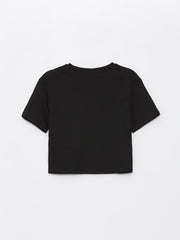 Crew Neck Printed Short Sleeve Girls Crop T-Shirt