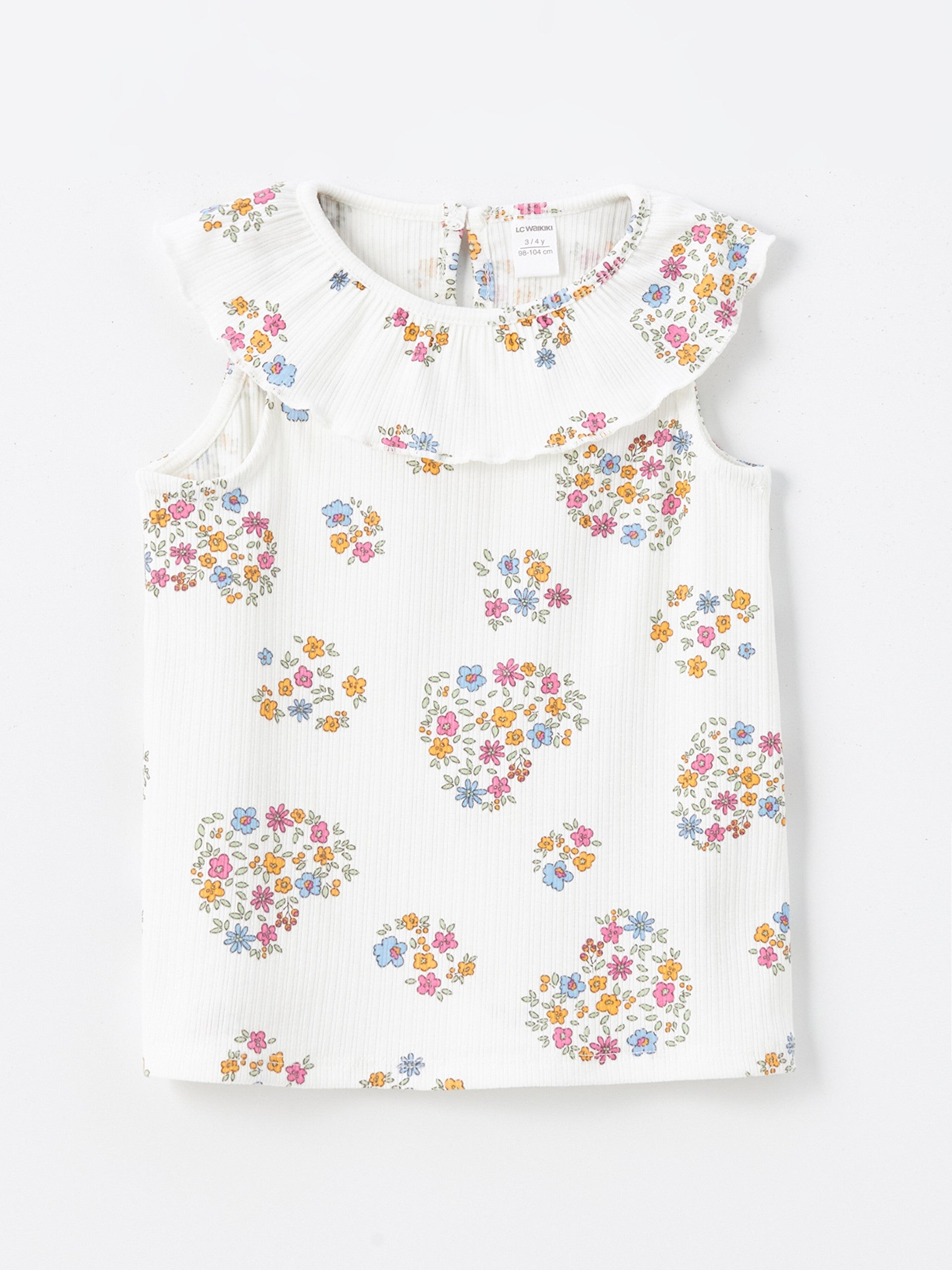 Crew Neck Sleeveless Floral Baby Girl Undershirt, Pack of 2