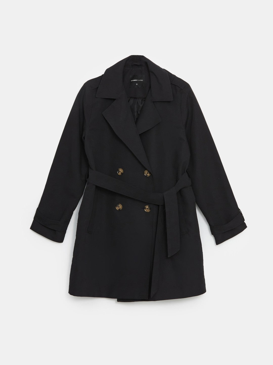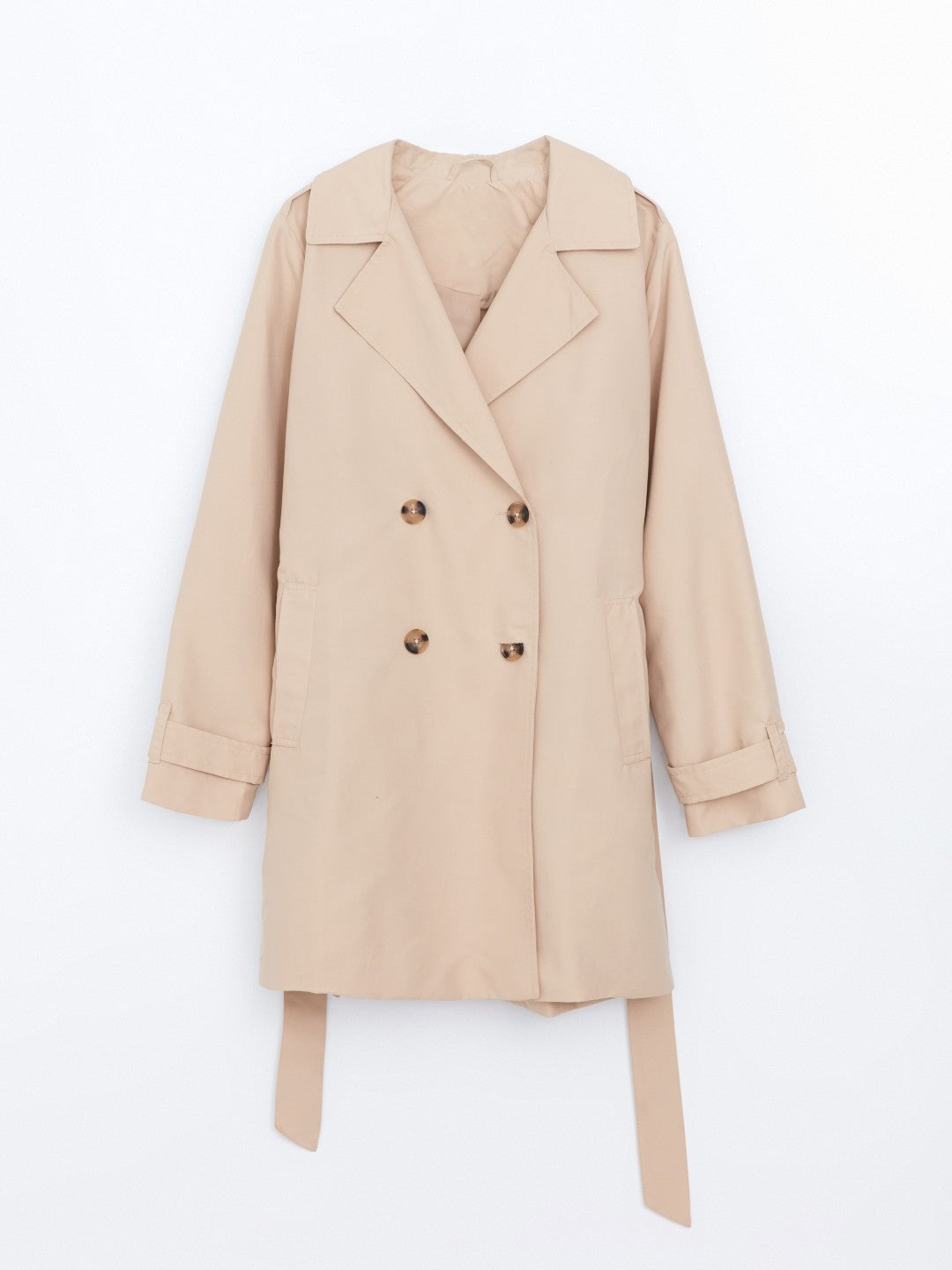 The jacket collar plain trench coat prevents cold air from entering thanks to its front button closure structure. There is a belt detail at the waist that you can adjust as you wish. It offers the opportunity to carry small items with its double pocket detail.