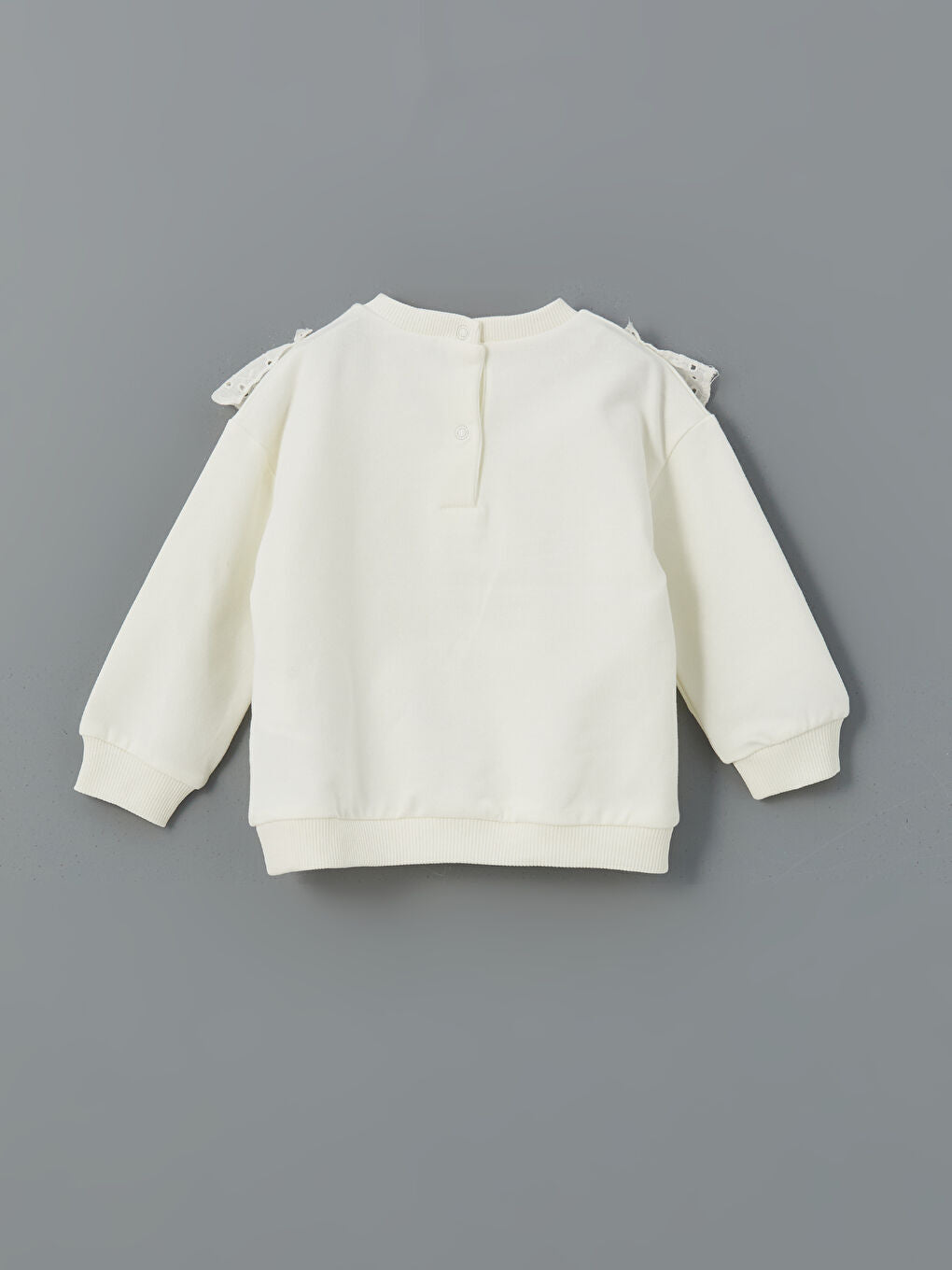 LCW baby Ecru Crew Neck Baby Girl Sweatshirt and Tights 2-Pack