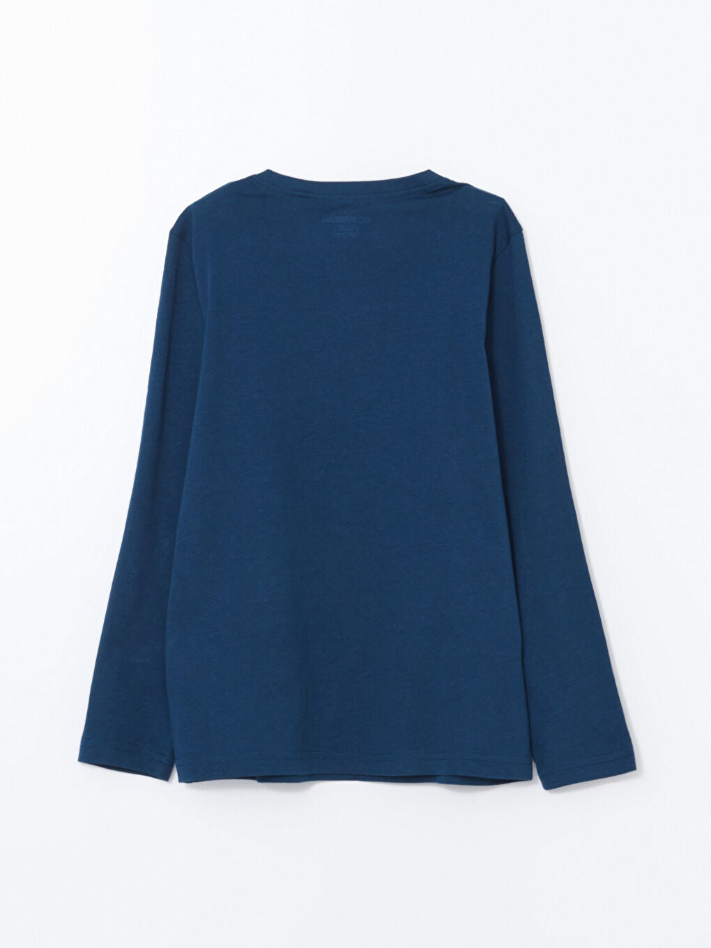 LCW Kids Navy Blue Crew Neck Dinosaur Printed Boys Pajama Set