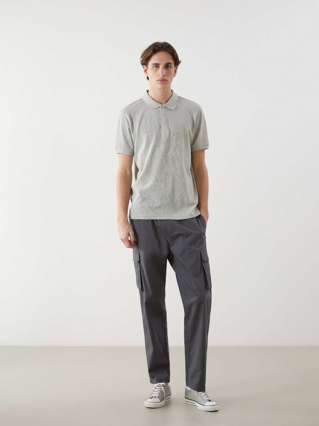 Made of waffle fabric, this t-shirt offers a stylish and modern look with its polo collar design. It provides comfortable use with its soft texture and comfortable structure.