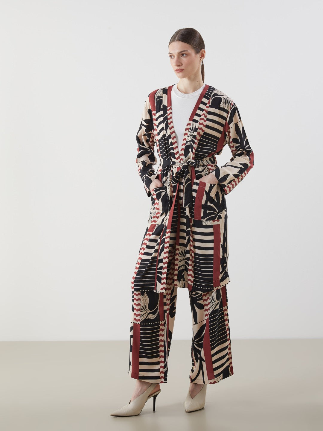 LCW Modest Shawl Collar Patterned Oversize Women Kimono