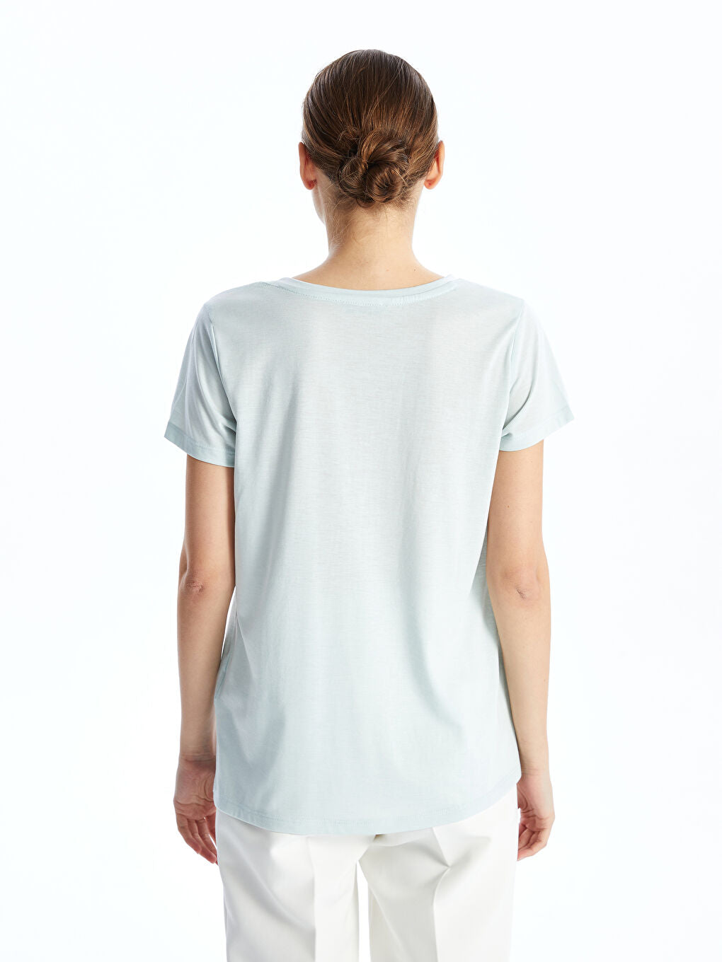 The crew neck embroidered short sleeve Women t-shirt is an ideal choice for your daily style. It prioritizes comfort with its soft texture and comfortable cut, while emphasizing your style with elegant embroidery details.