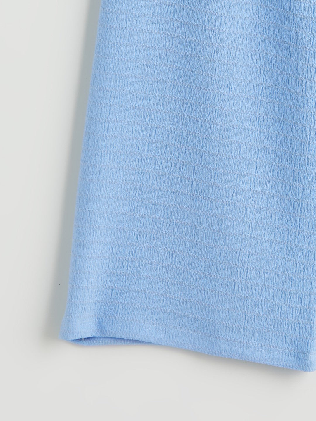 Made from raschel fabric, girls trousers have an elasticated waist design and wide-leg molded wide legs.