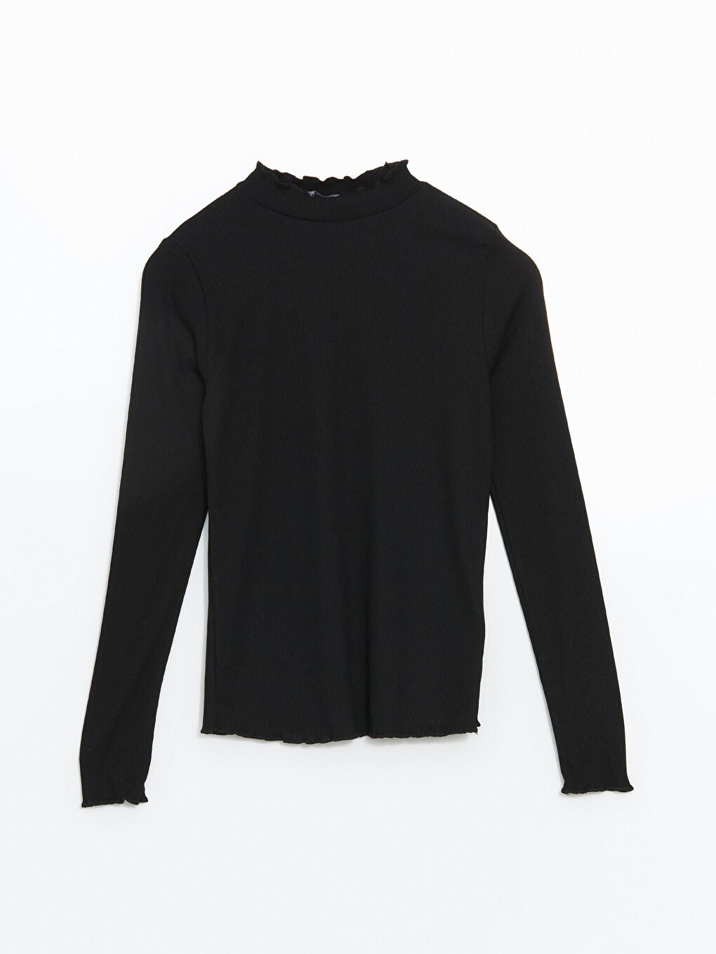 The high-neck, plain short-sleeved bodysuit is made of camisole fabric. In this way, it hugs your body and offers a soft touch.
