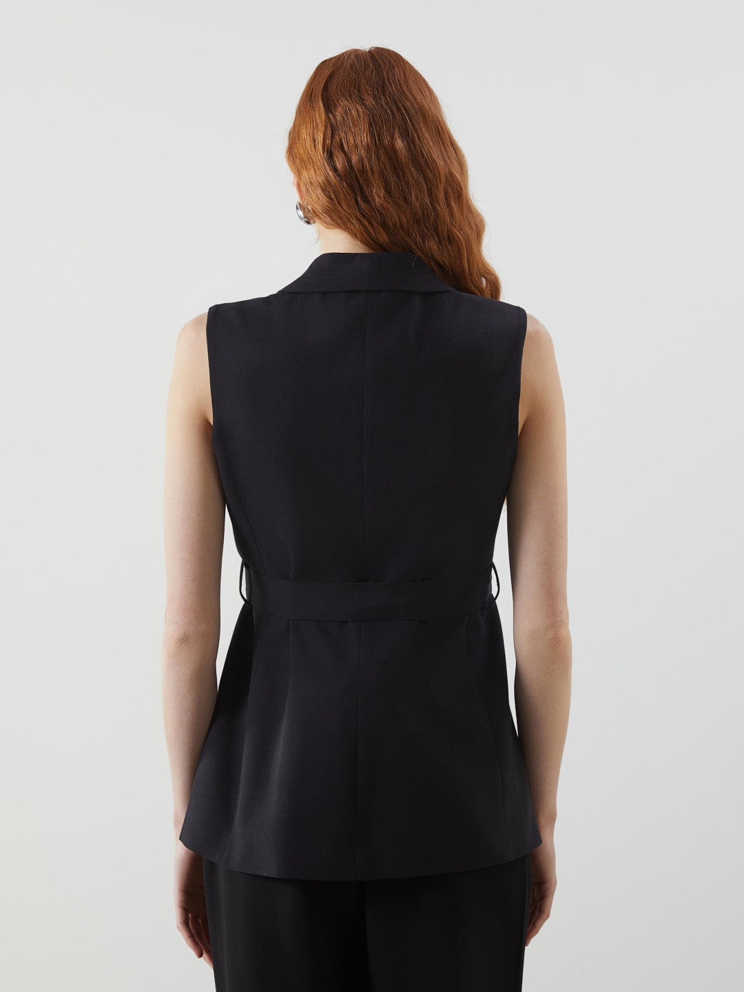 Jacket collar linen blend women's classic vest offers comfort with its light and breathable linen blend fabric. The tie detail at the waist adds an elegant touch that completes the elegance.