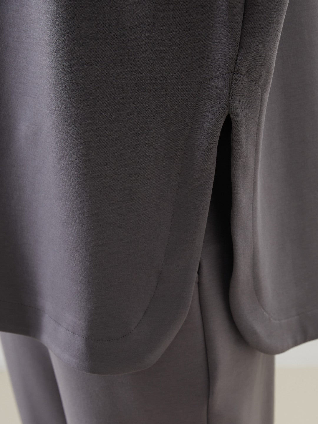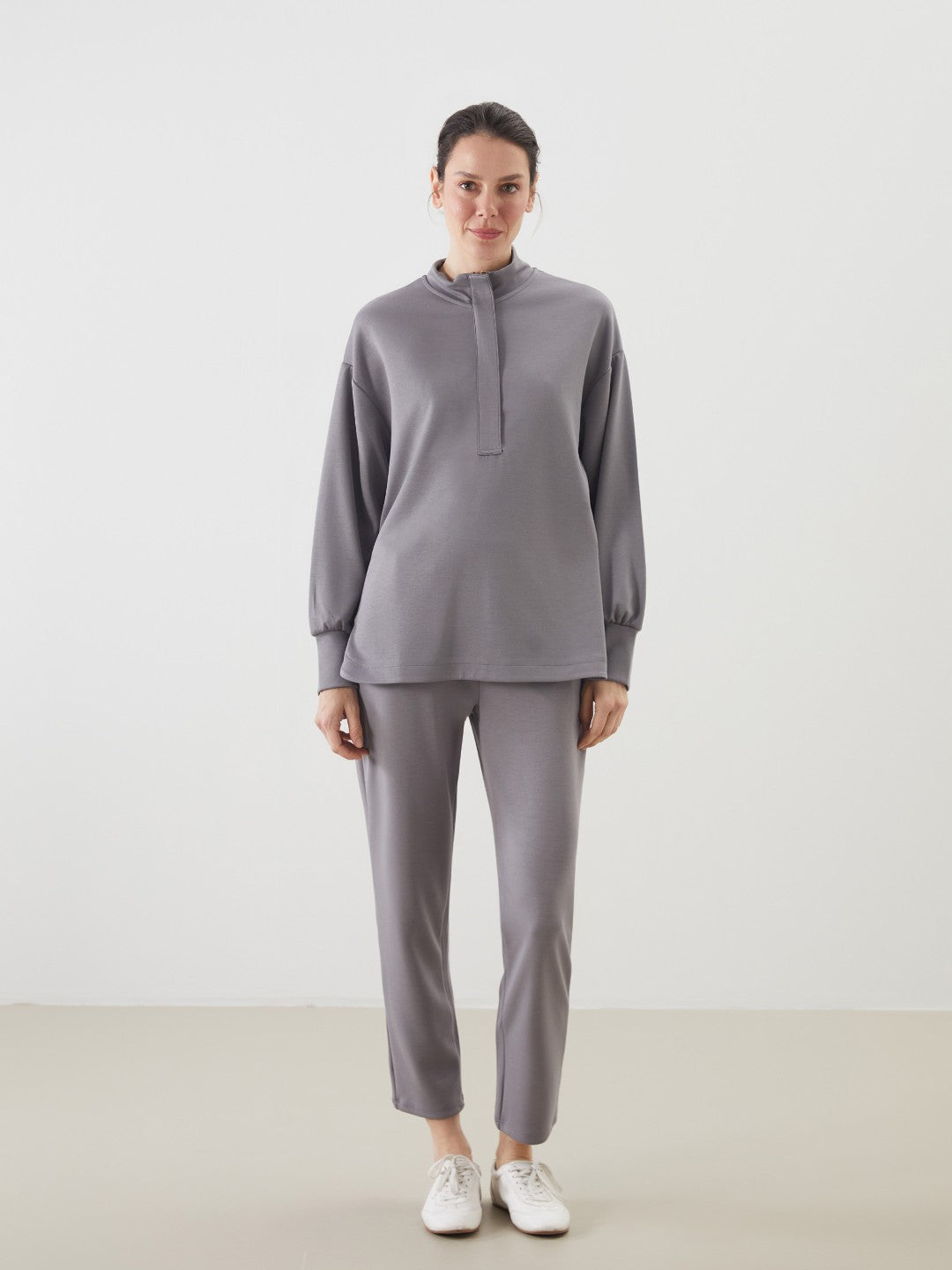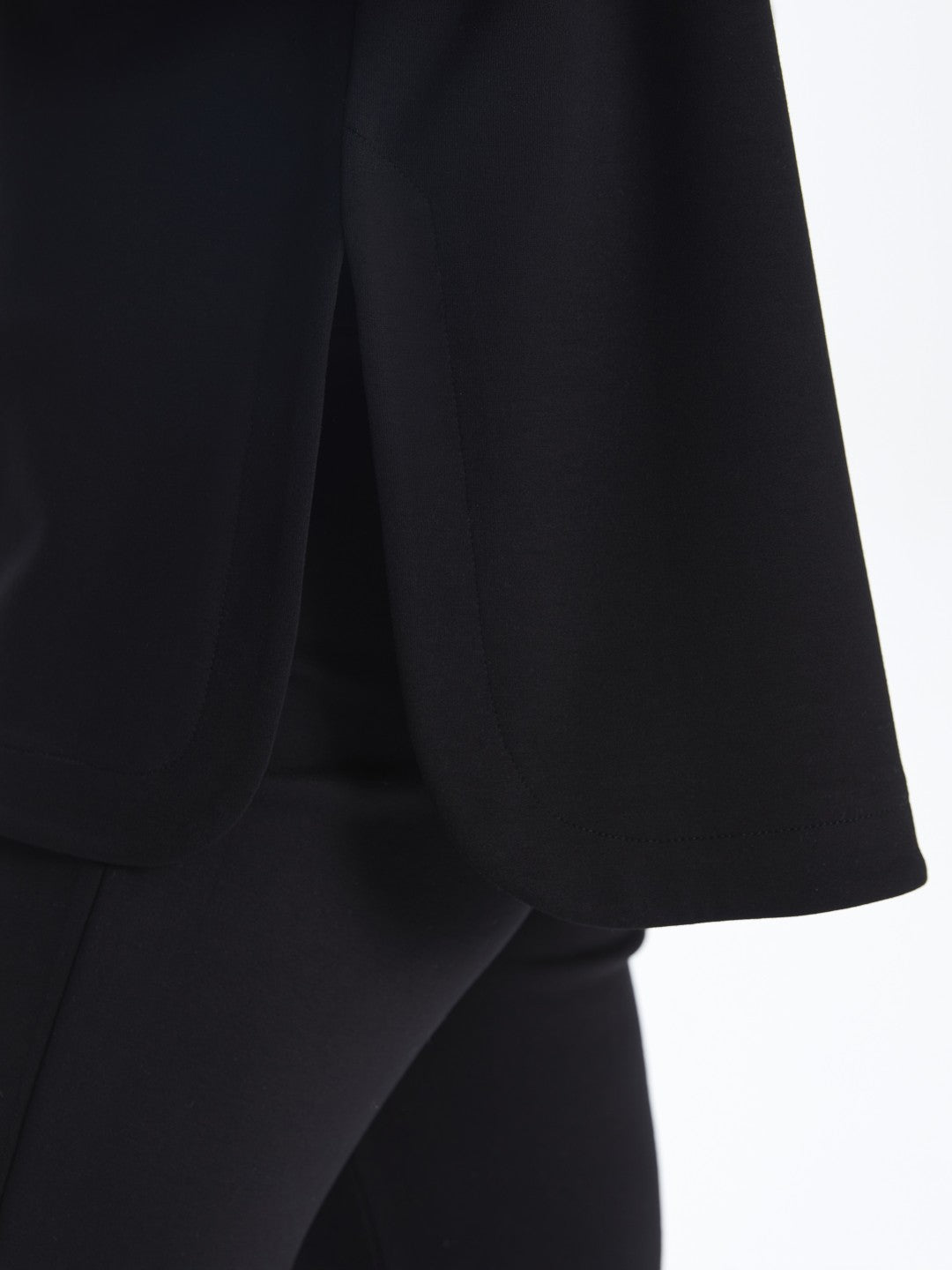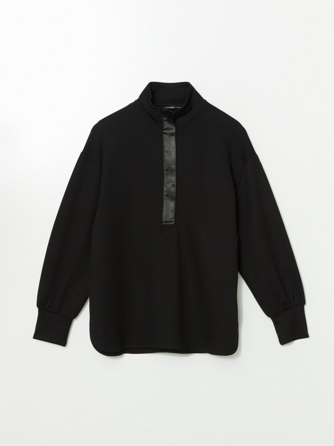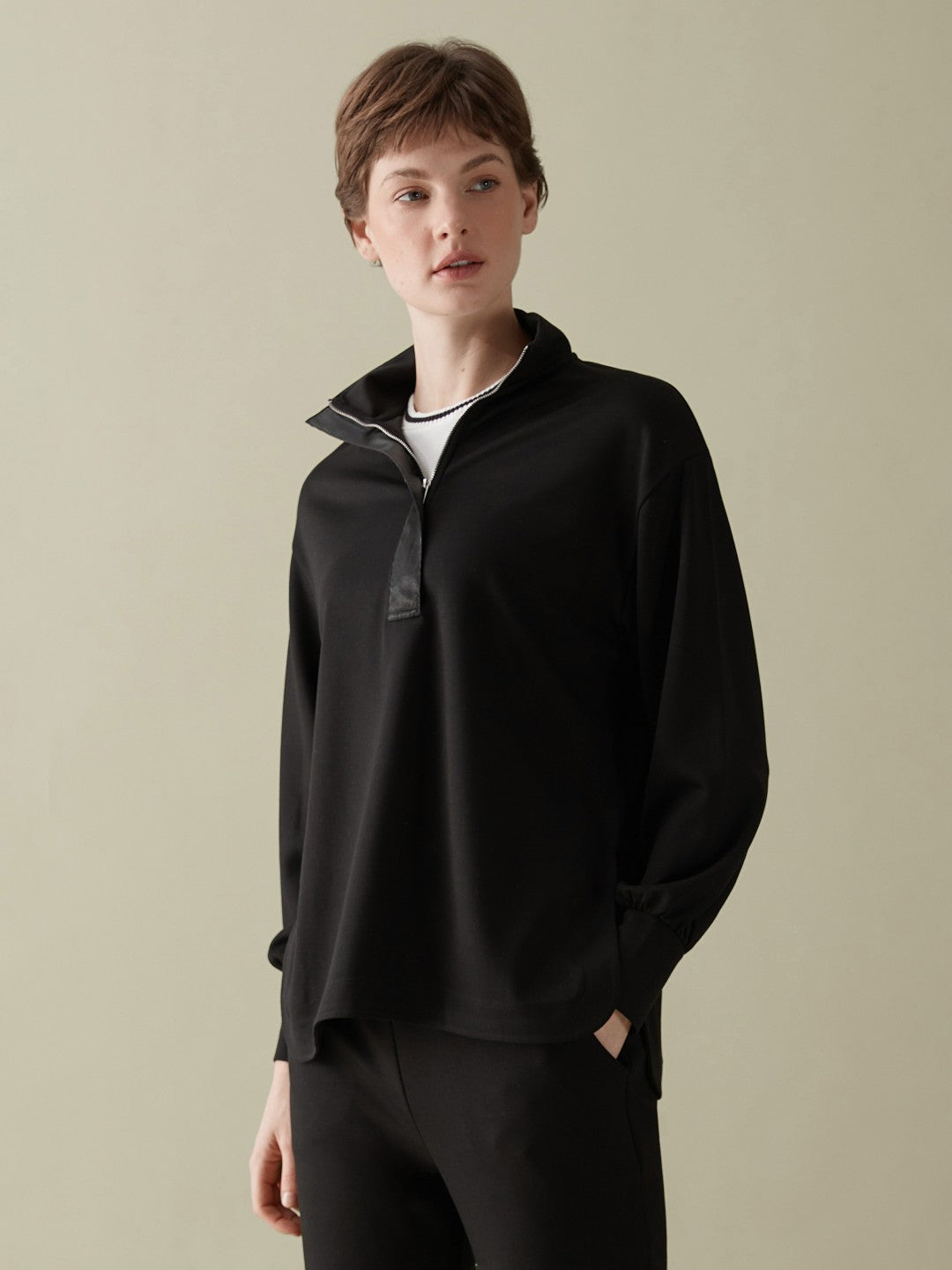 The high-neck women's T-shirt offers comfort with its soft and durable interlock fabric. The hidden zipper closure on the collar adds a stylish detail and provides practical use.