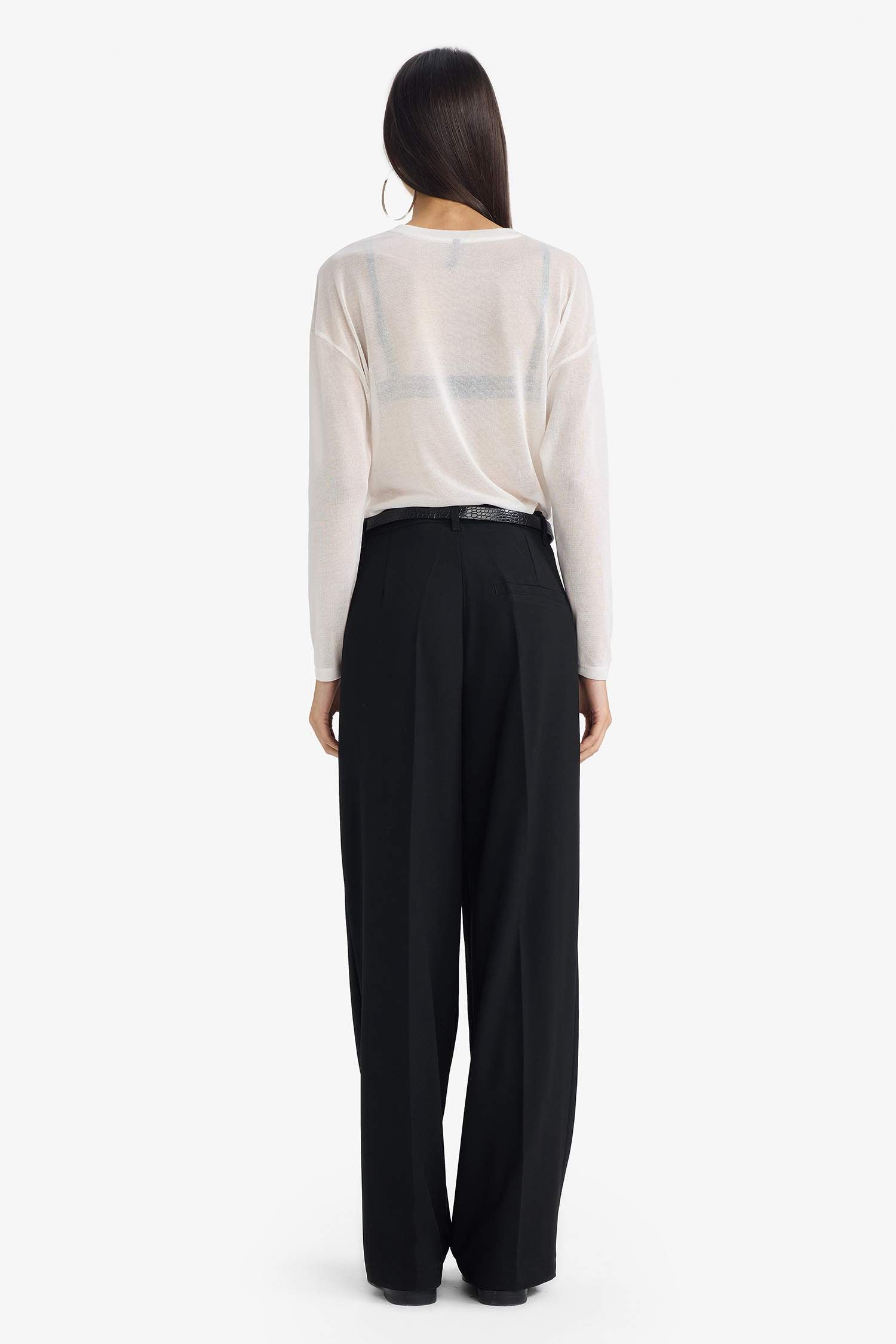 Straight Fit Trousers with Welt Pockets, Regular Waist, Standard Length
