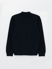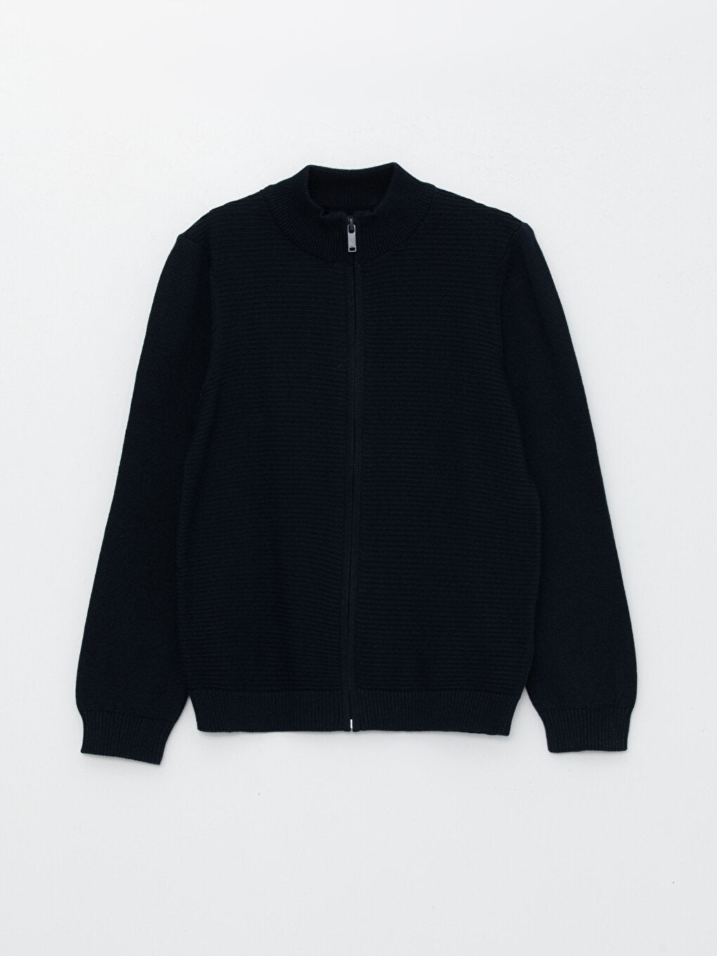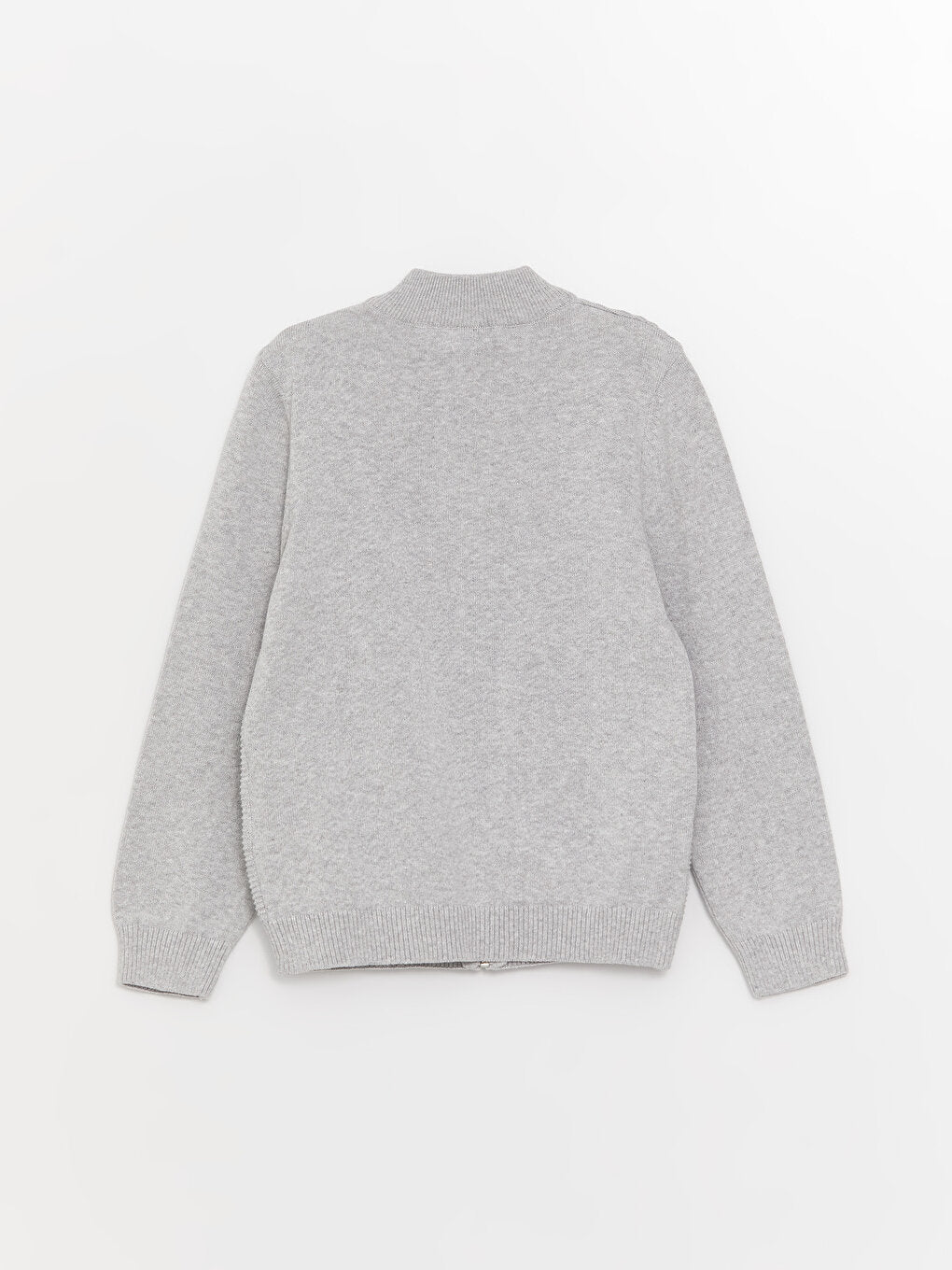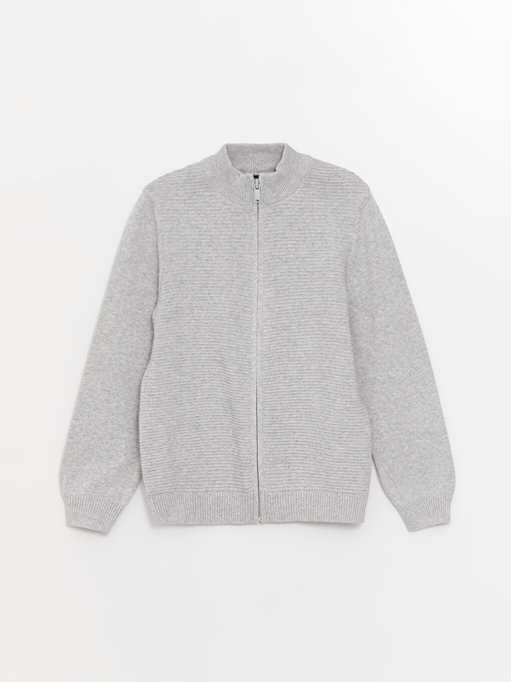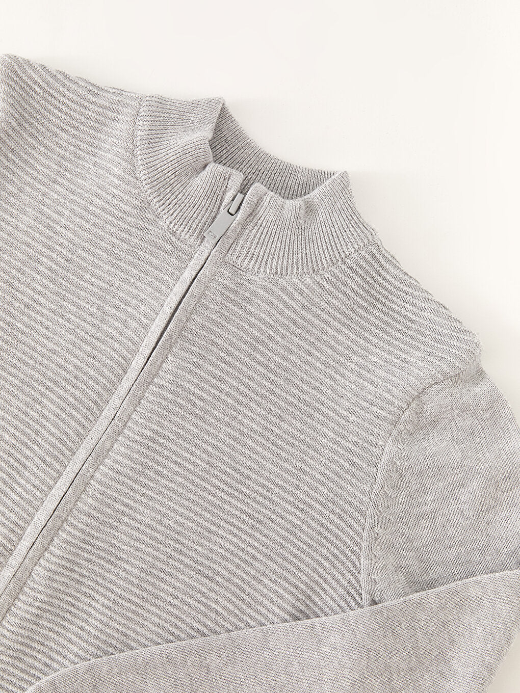 The zippered knit cardigan is both a comfortable and stylish option with its ribbed details on the cuffs and hem. It offers a stylish look by completing your children's style on cold days.