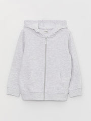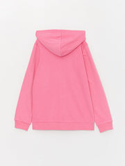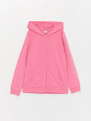Hooded Basic Long Sleeve Girls Zippered Sweatshirt