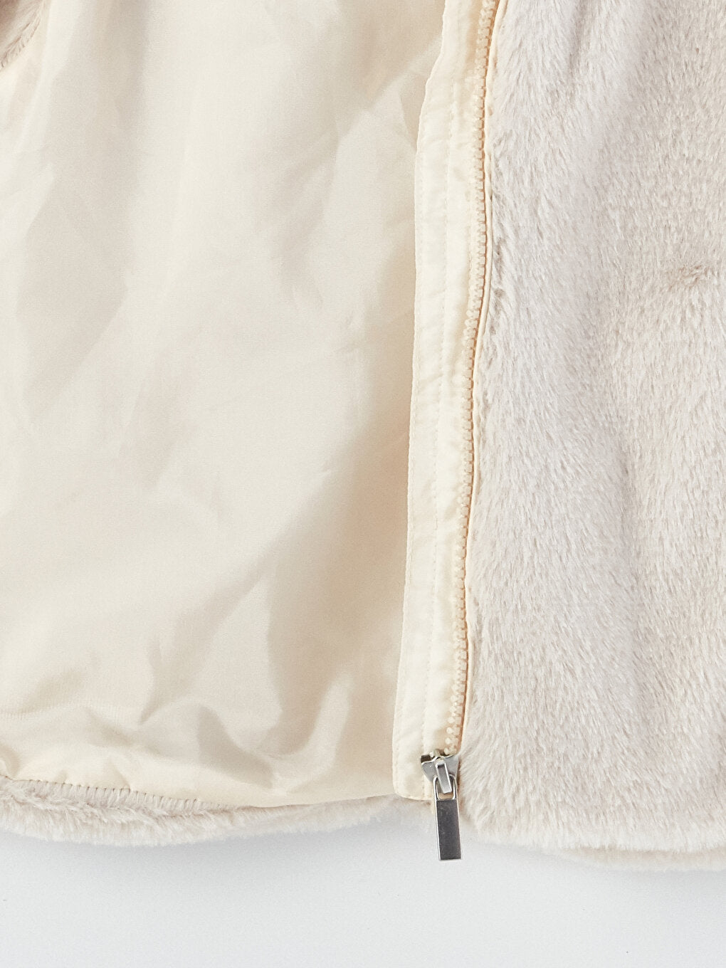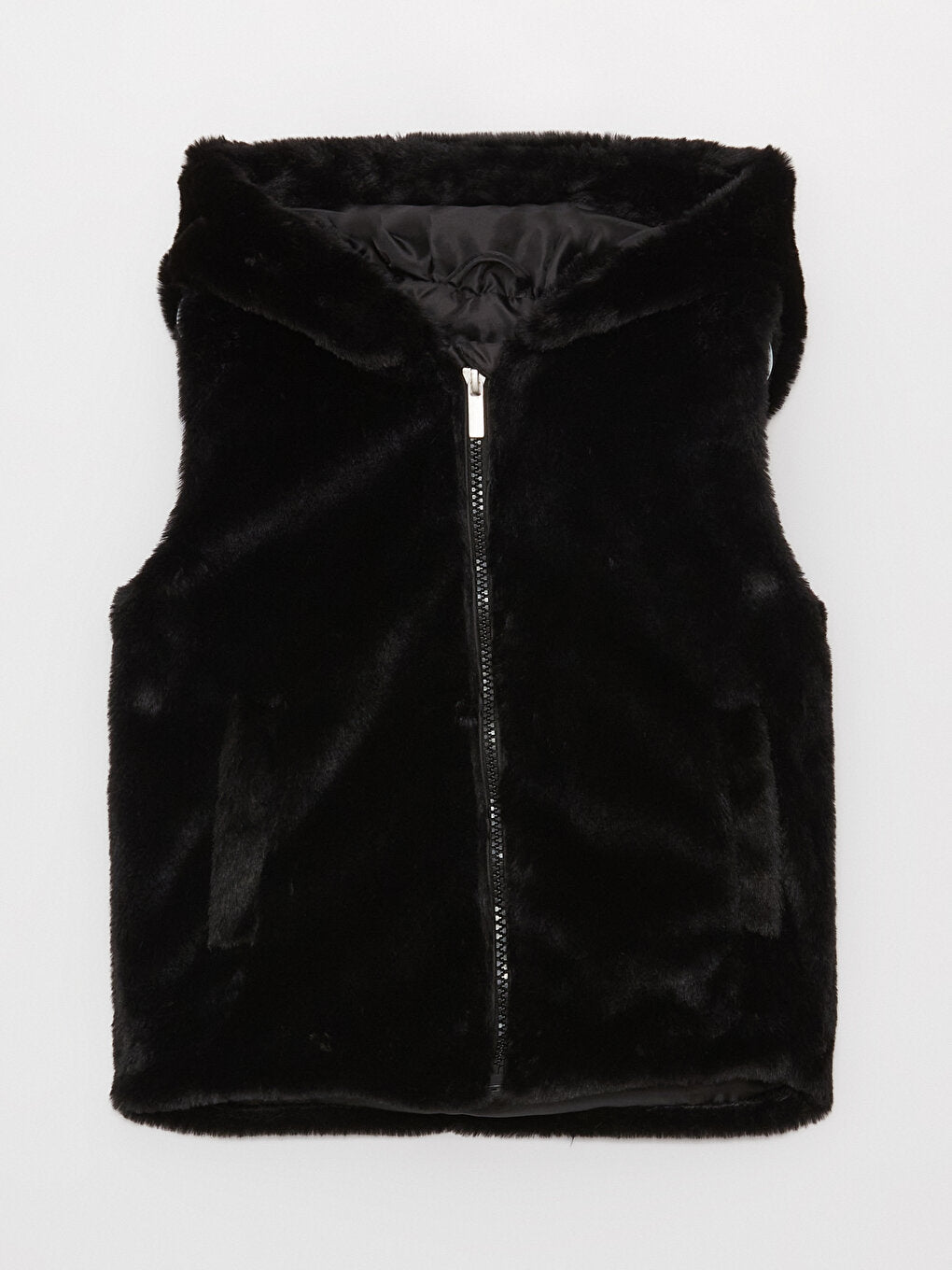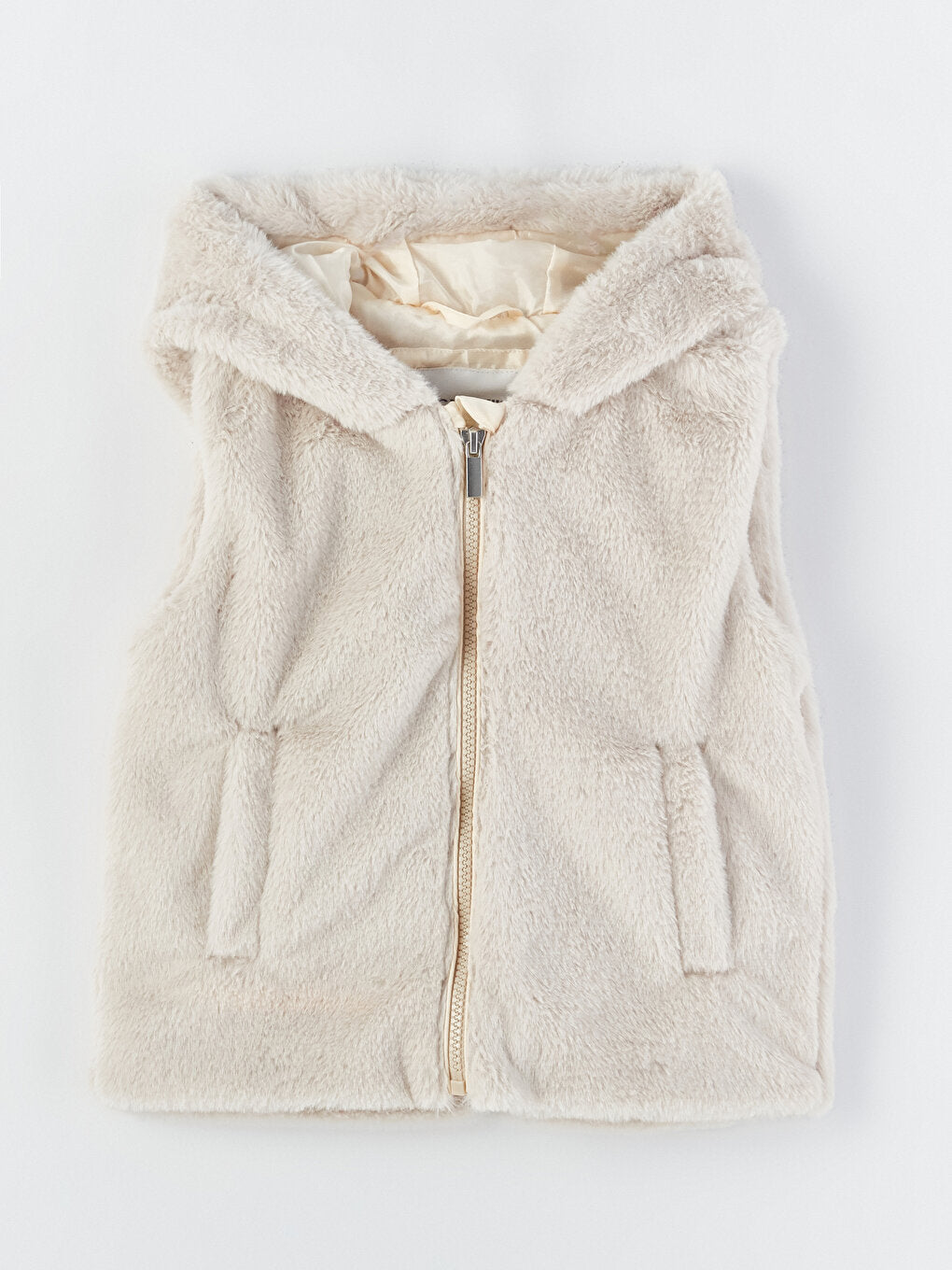 The hooded girl's vest keeps you soft and warm thanks to its plush fabric. It provides ease of wearing with its zipper closure design. It completes every combination with its stylish and cute design.