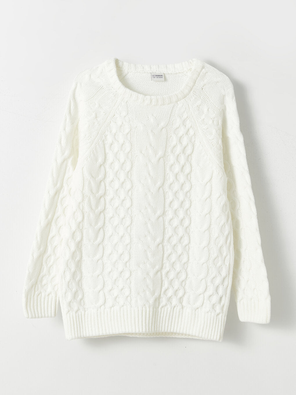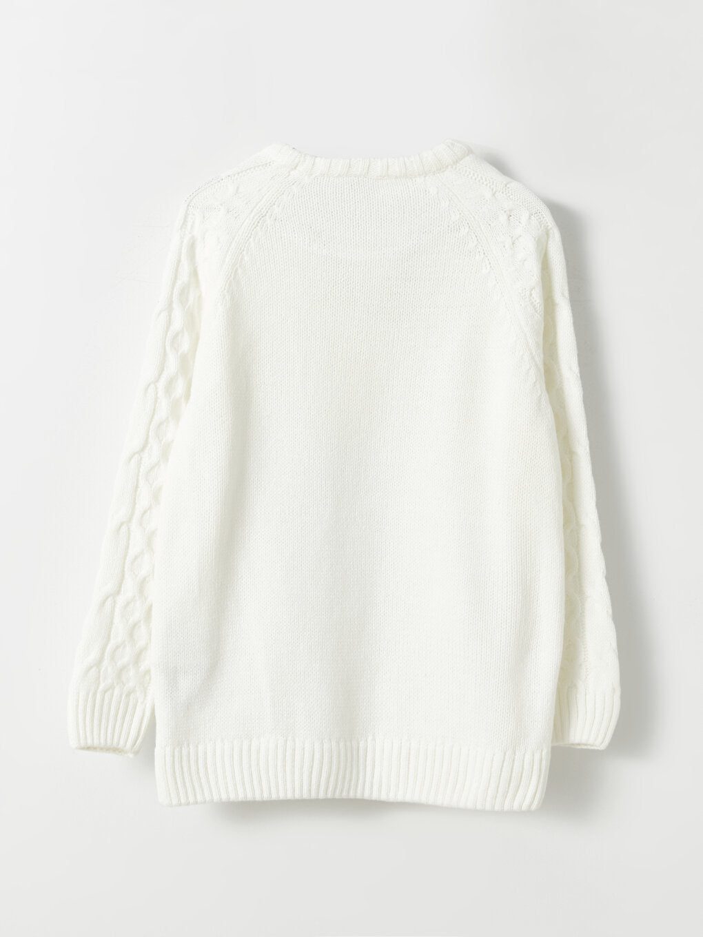 Crew Neck Braid Patterned Long Sleeve Girls Knitwear Sweater