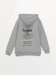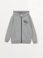 Hooded Printed Long Sleeve Boys' Zipper Sweatshirt
