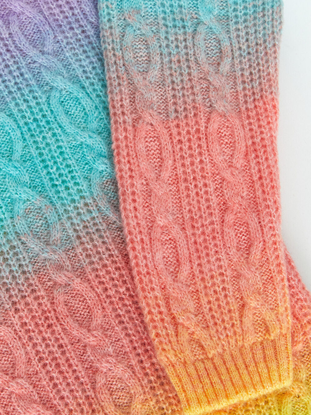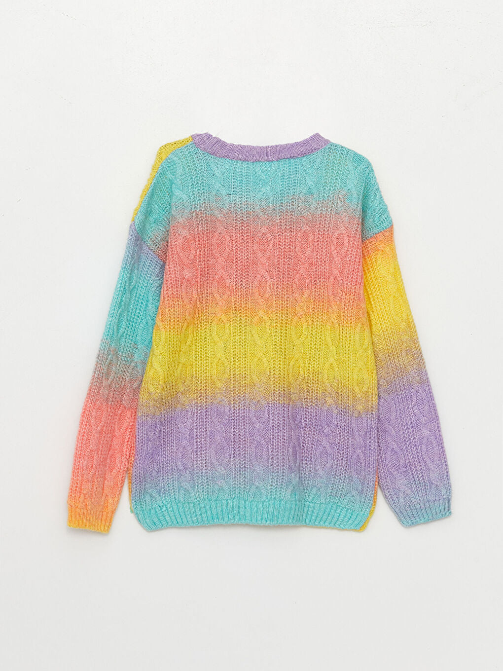 Crew Neck Color Blocked Long Sleeve Girls Knitwear Sweater