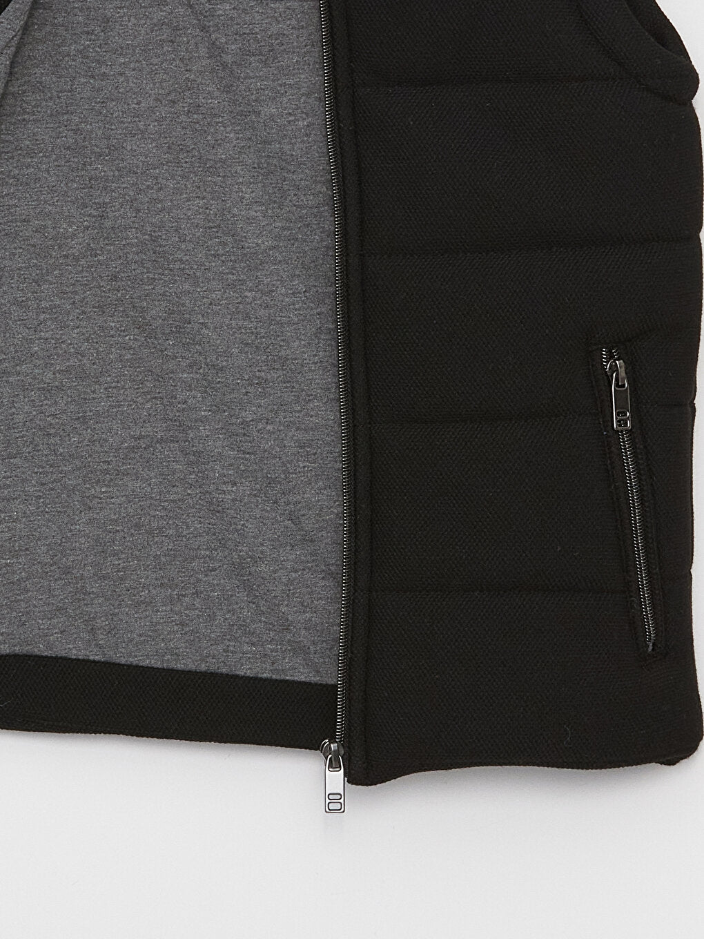 With its stand-up collar design and zippered closure, the boy's vest offers ease of use. The zippered pocket detail on the vest adds style and offers a practical storage space for small items.