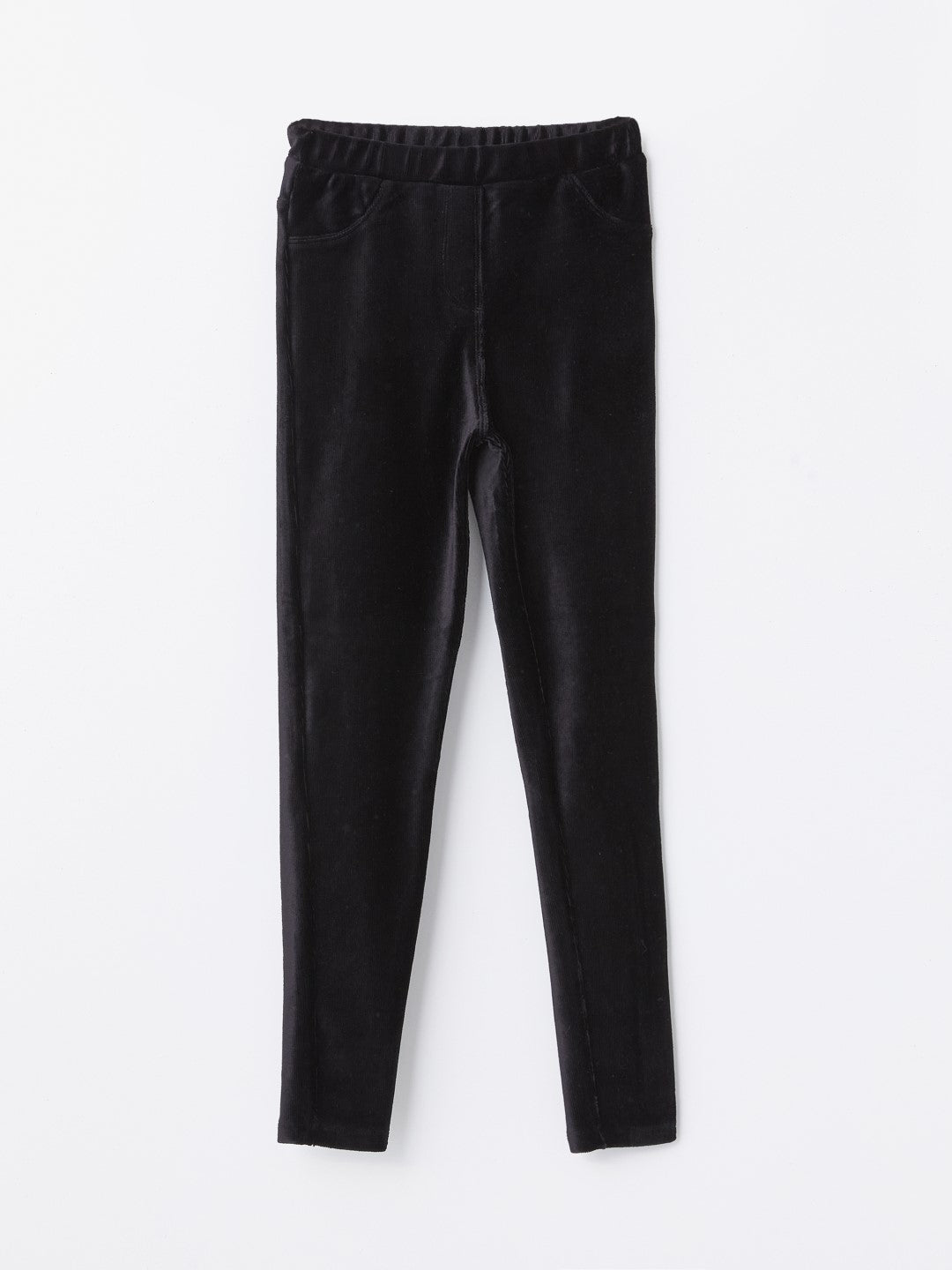 LCW Kids New Black Elastic Waist Velvet Girls Leggings