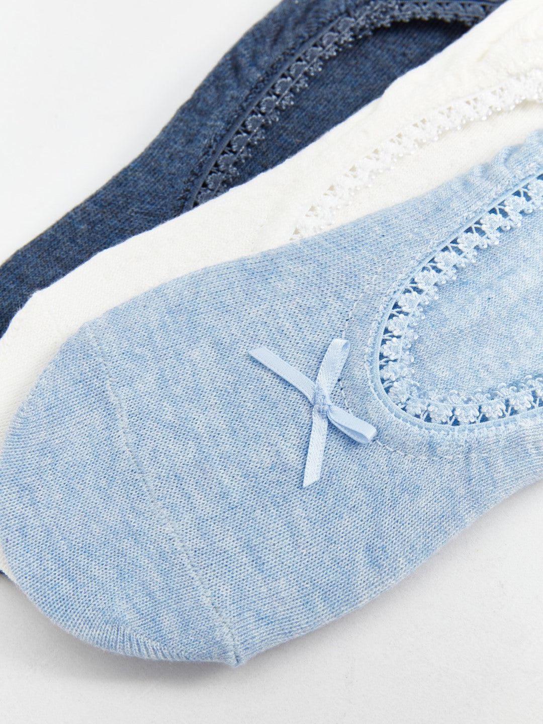 LCW DREAM Light Blue Melange Women's Plain Ballerina Socks 3-Pack