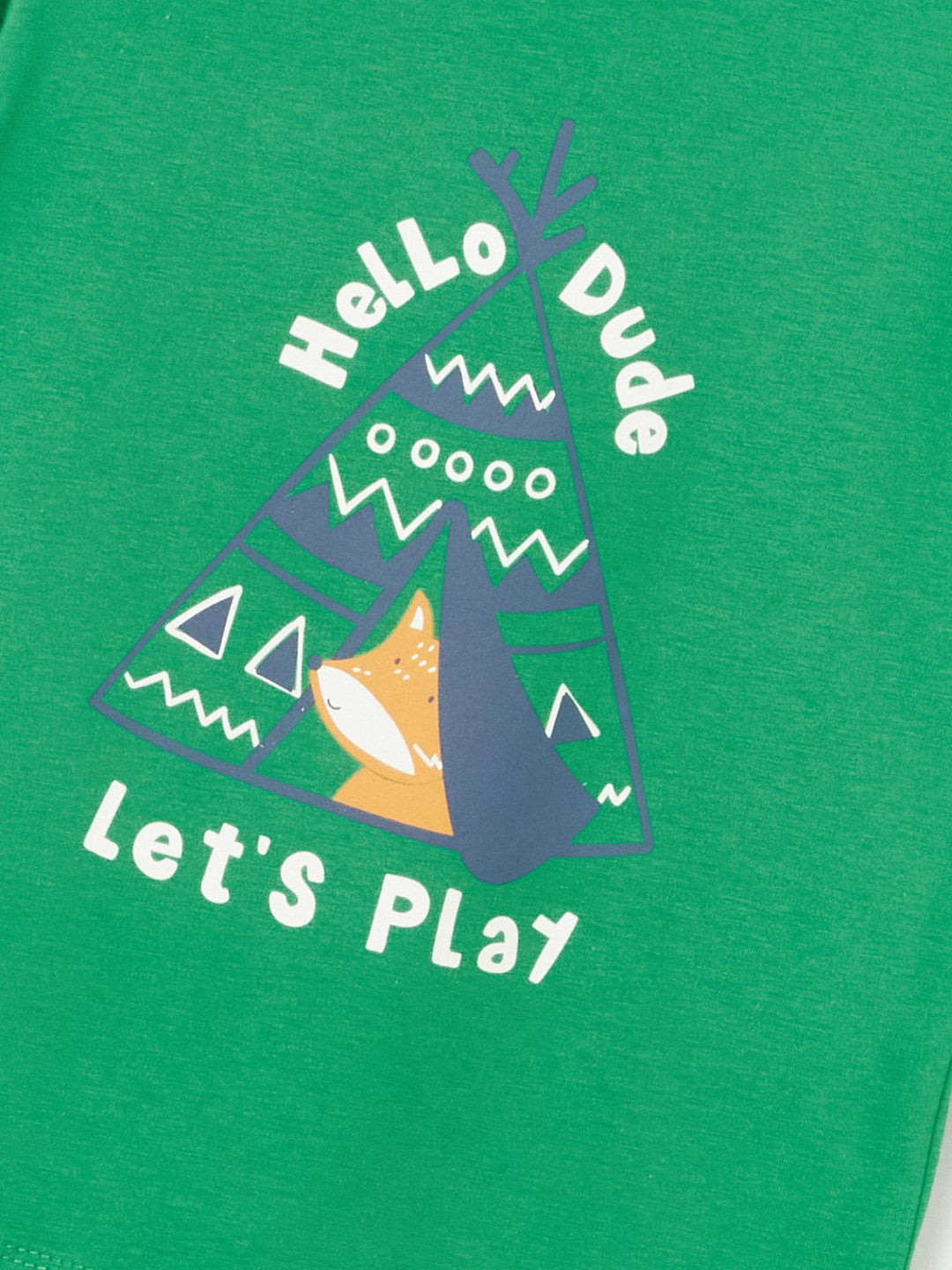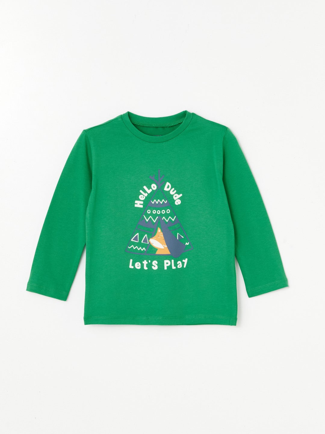 LCW baby Green Crew Neck Long Sleeve Printed Baby Boy T-Shirt