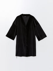 Lcw Dream Black Shawl Collar Velvet Women'S Dressing Gown