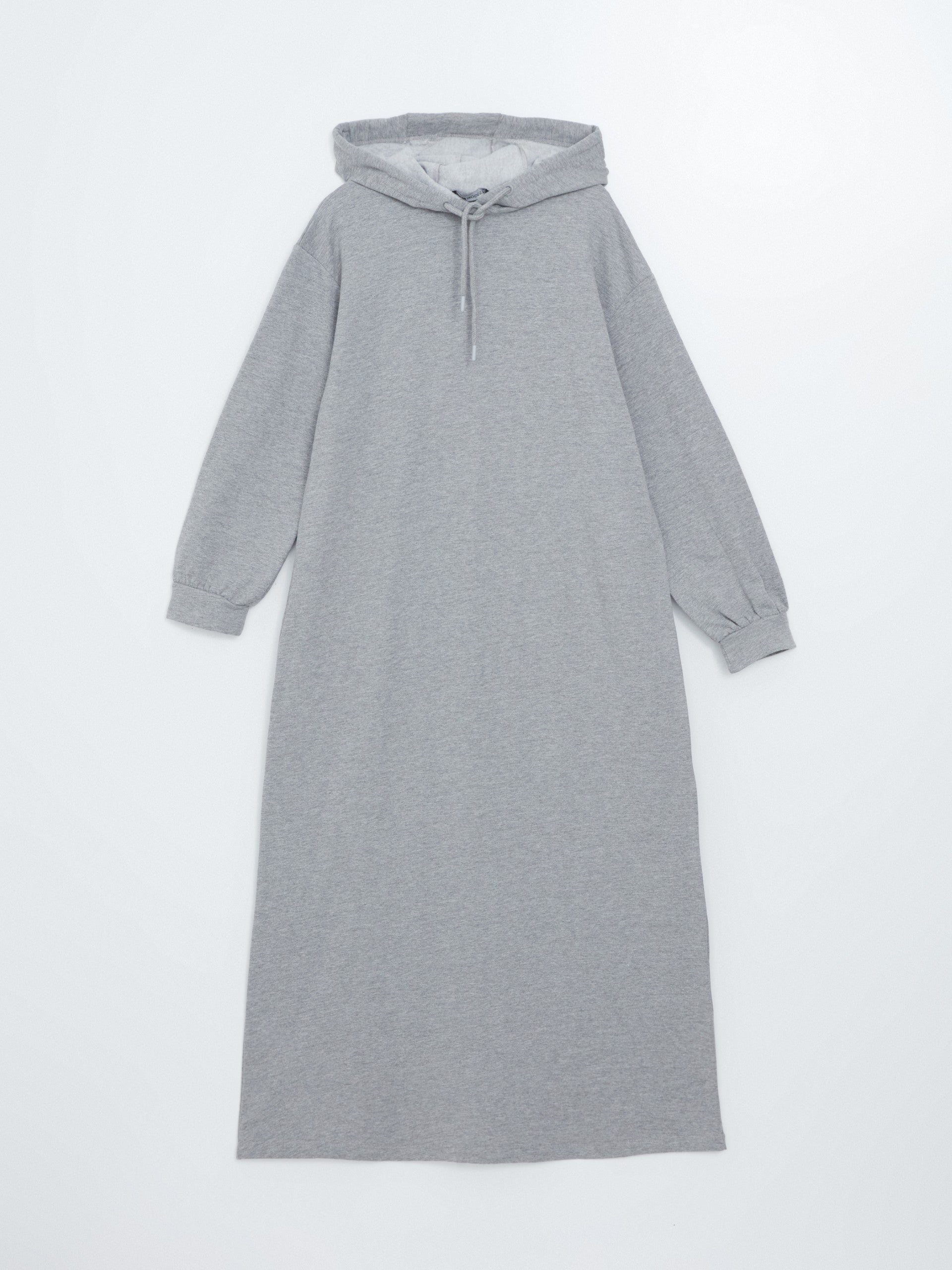 Lcw Modest Gray Hooded Oversize Women'S Sweatshirt Dress