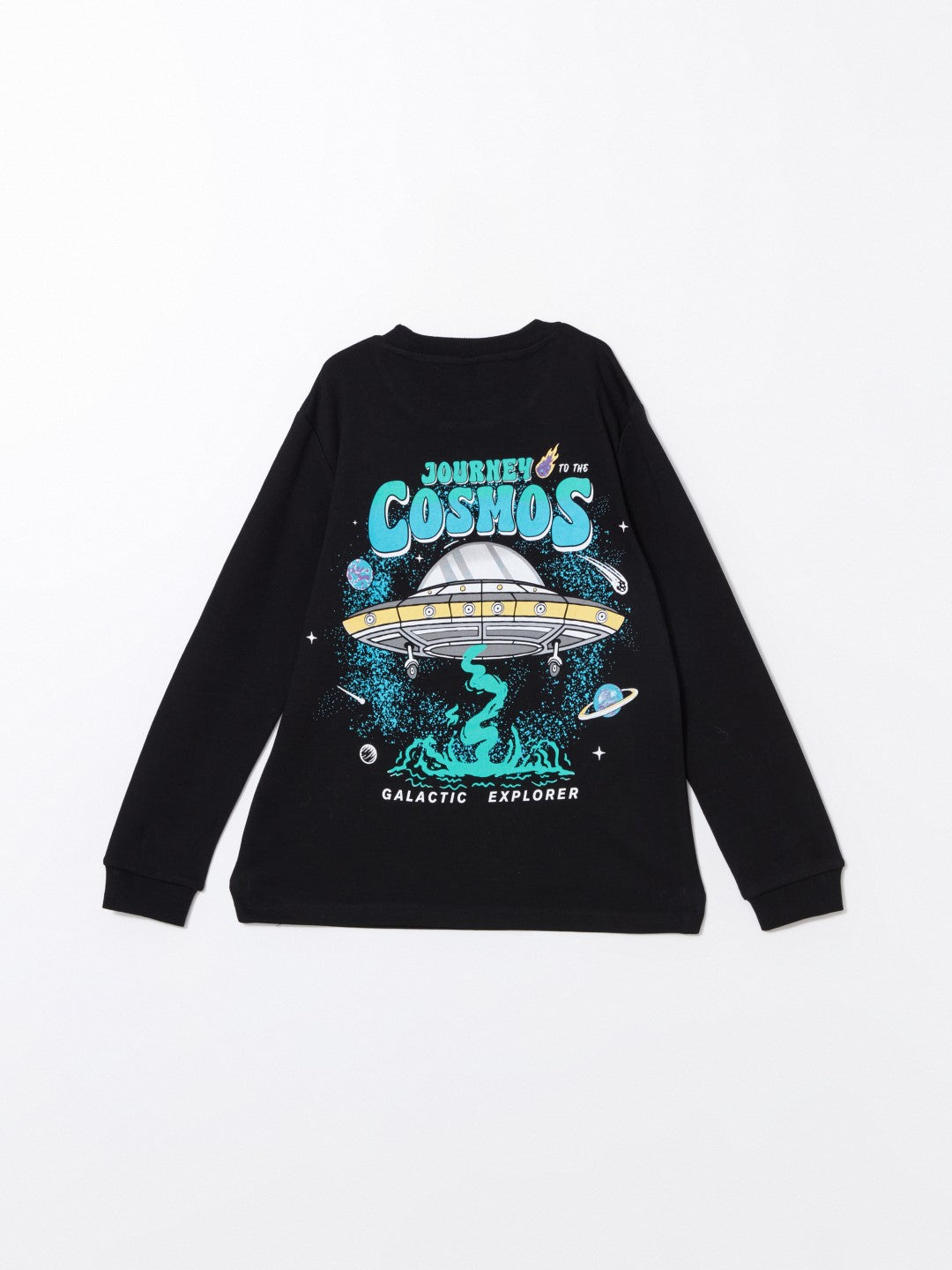 Made of cotton interlock fabric, the t-shirt offers comfortable use with its ribbed cuffs and hem details. It reflects the fun and energetic style of children with its prints on both the front and back.