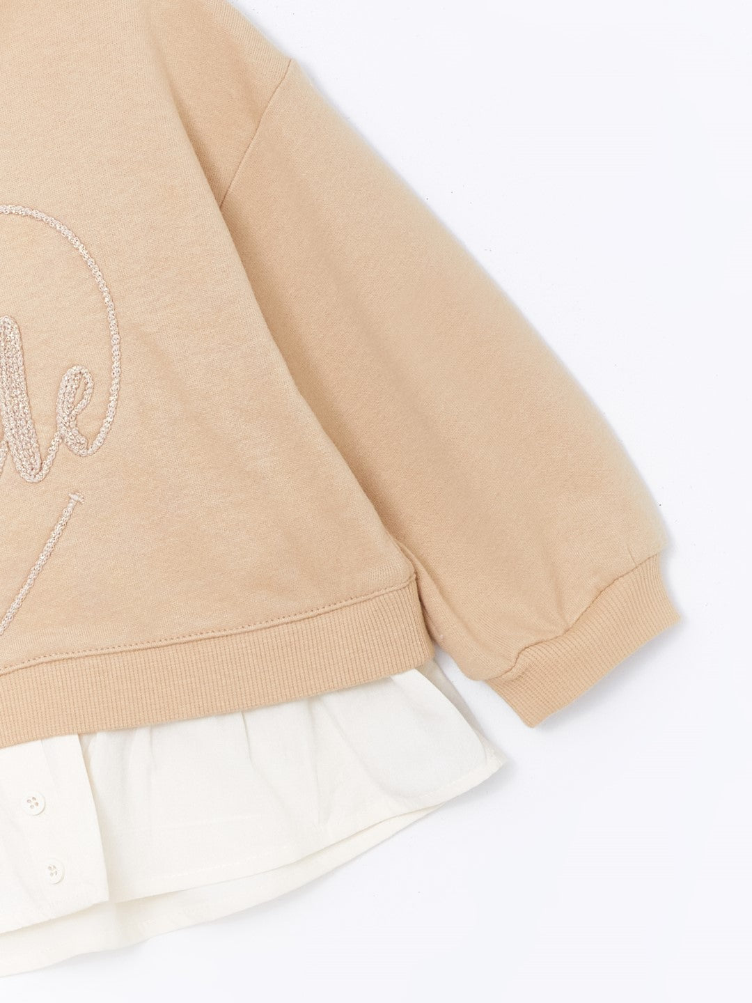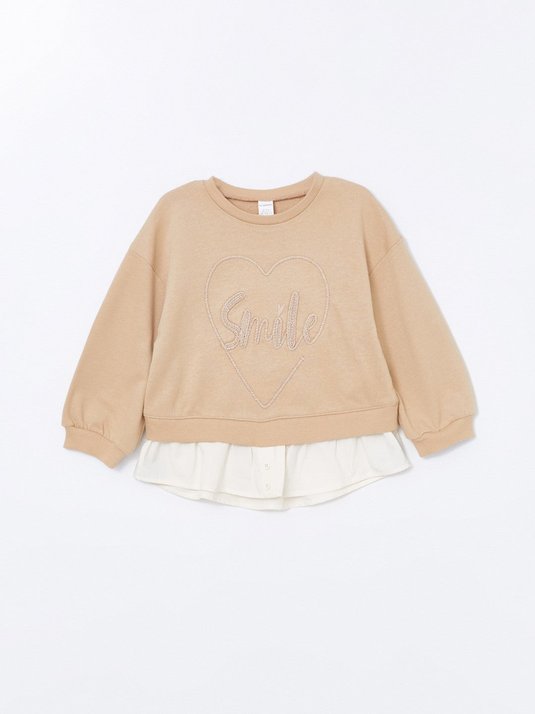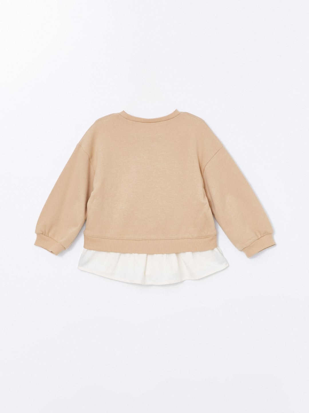 LCW baby Beige Crew Neck Long Sleeve Printed Baby Girl Sweatshirt