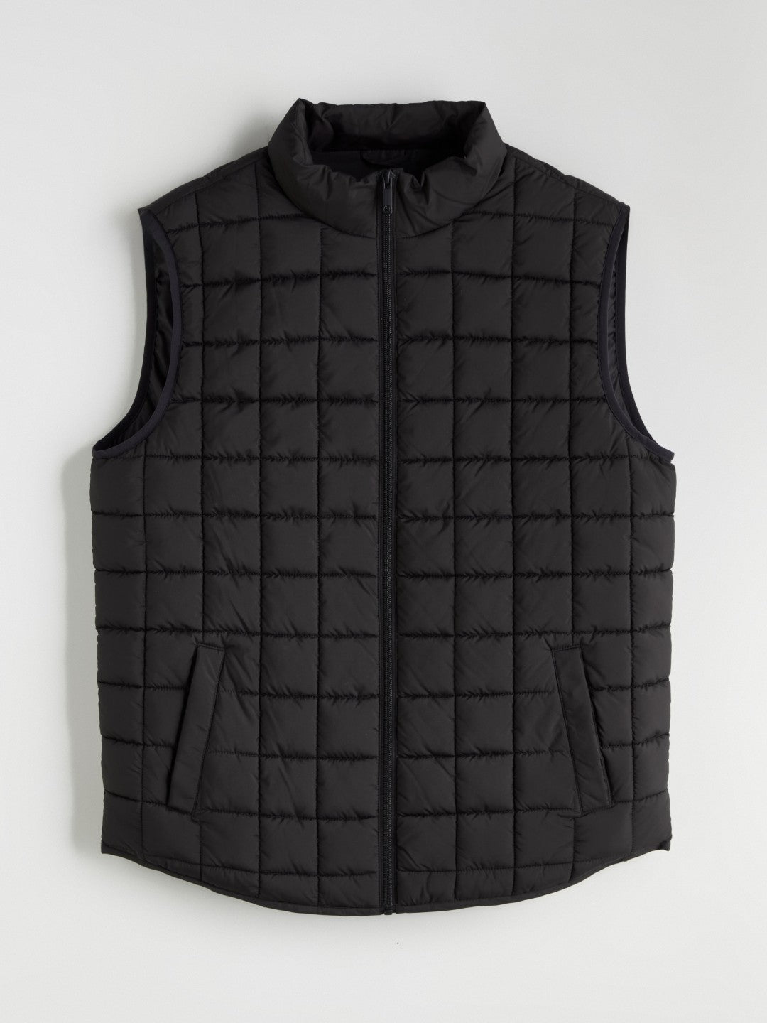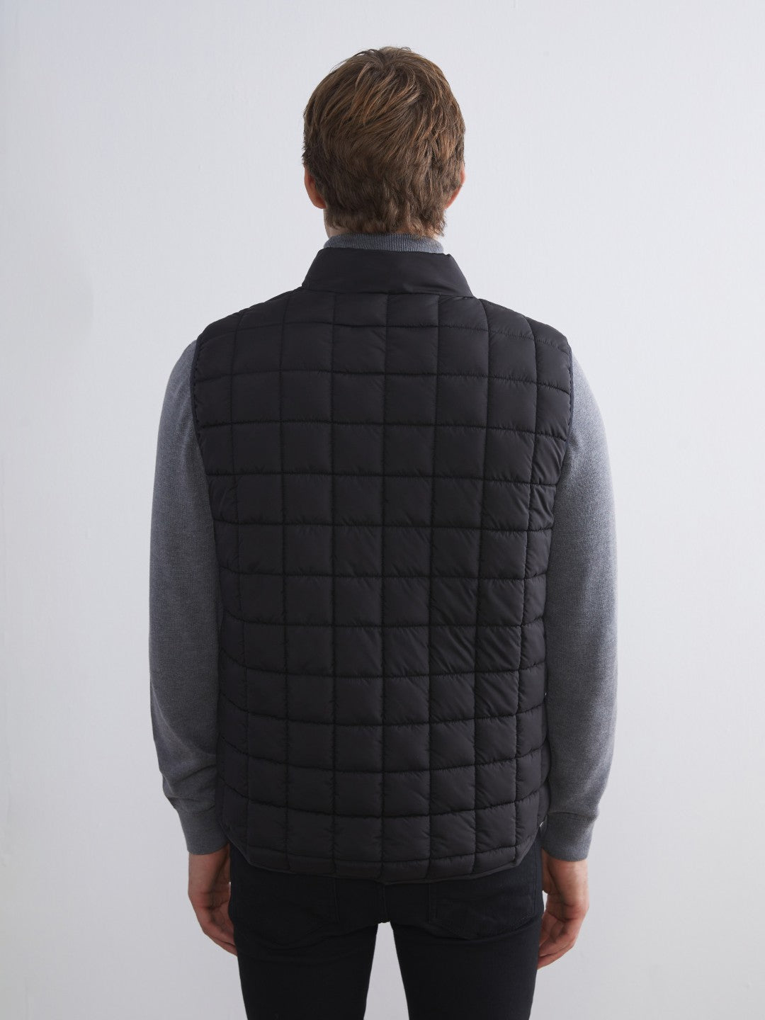 The men vest, with a slim fit cut, is produced in inflatable form with a stand-up collar detail.