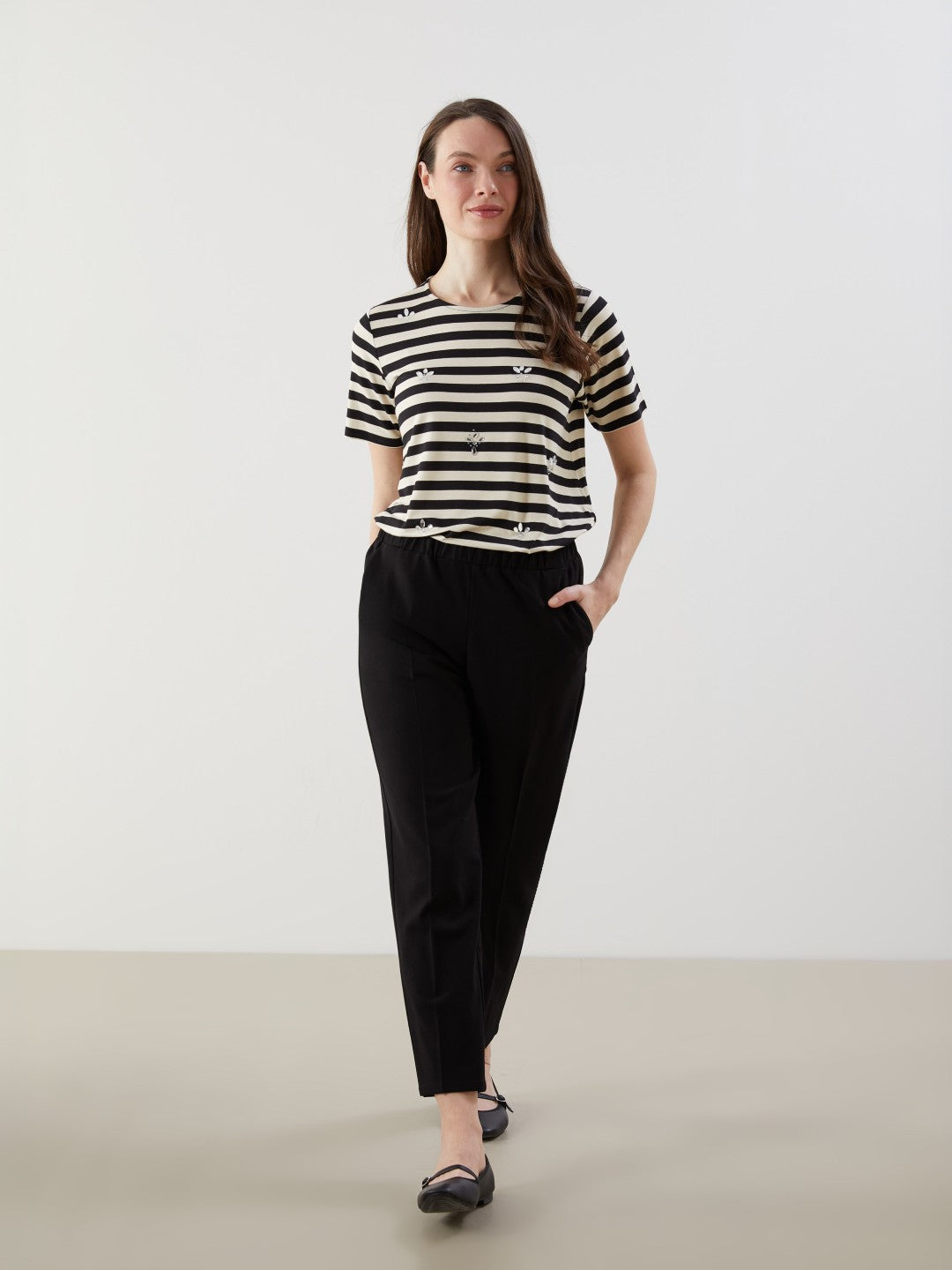 LCW Grace Black Plus Size Elastic Waist Women Trousers