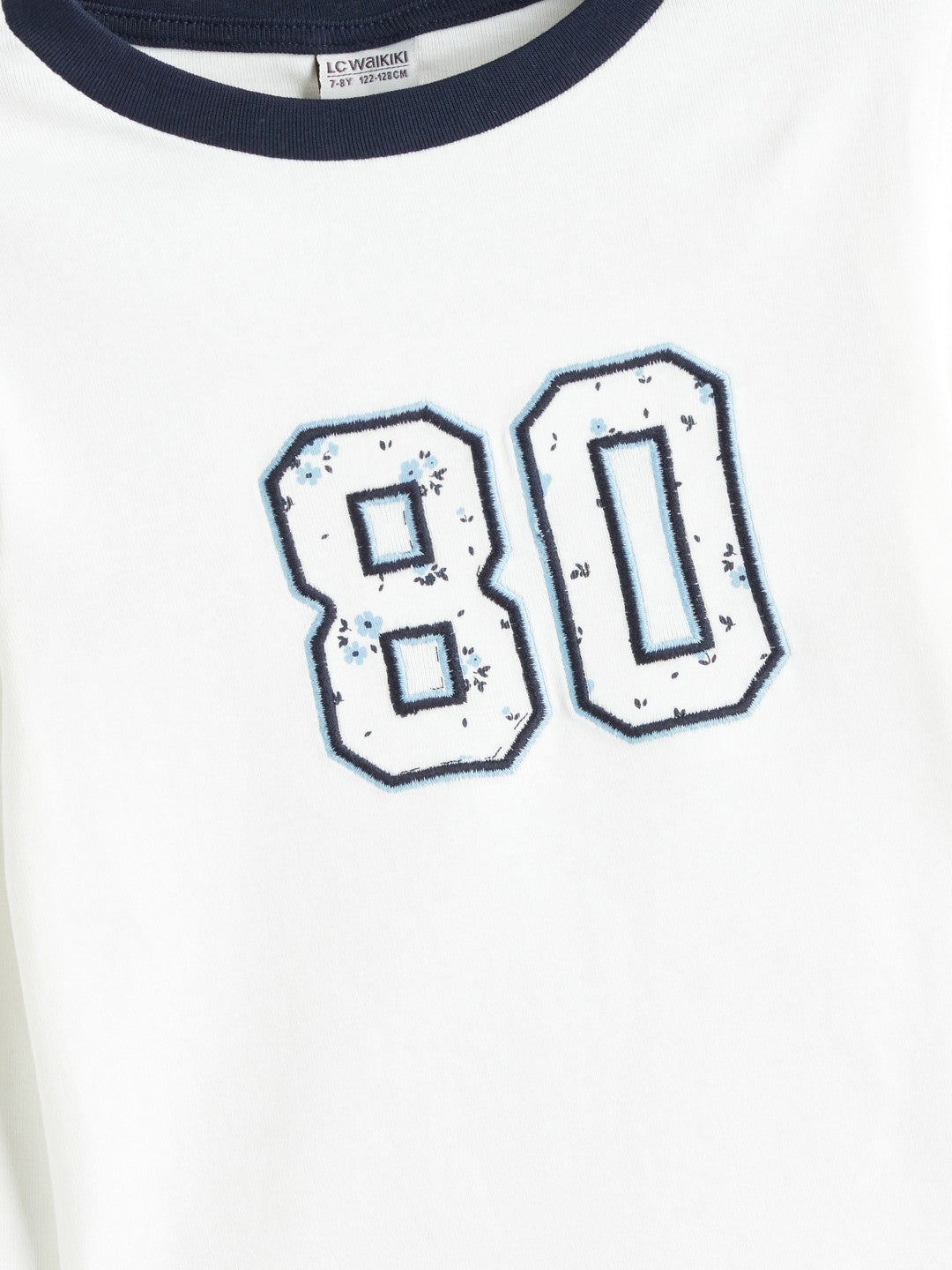 This slim-fit, crew-neck, long-sleeved girls t-shirt is made of high-cotton camisole fabric. It features a number applique on the front.