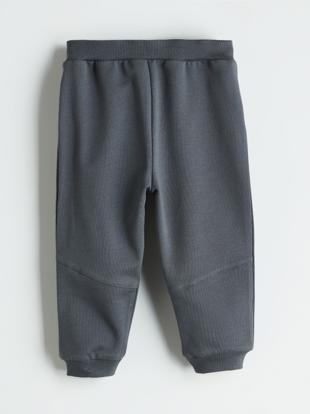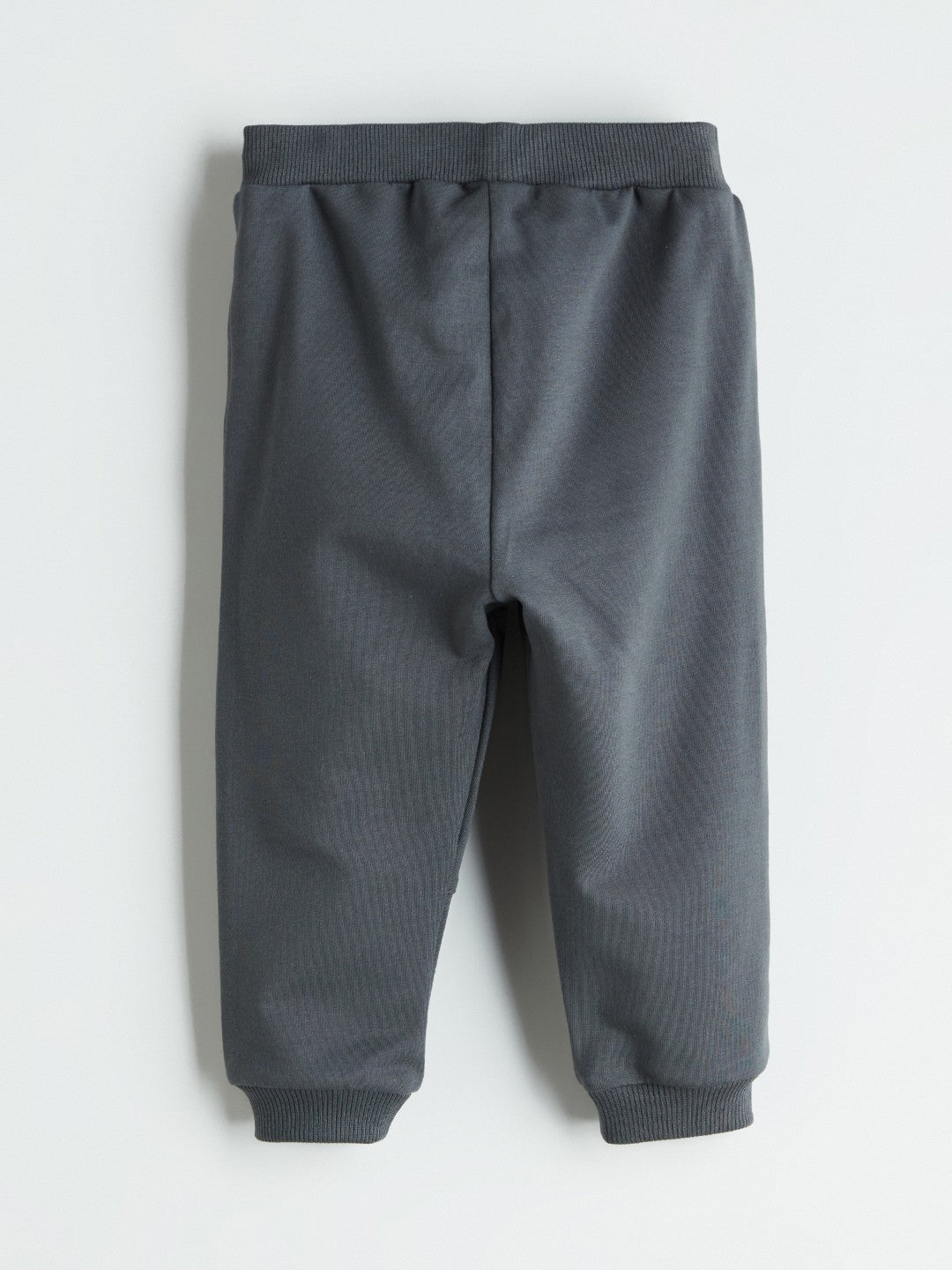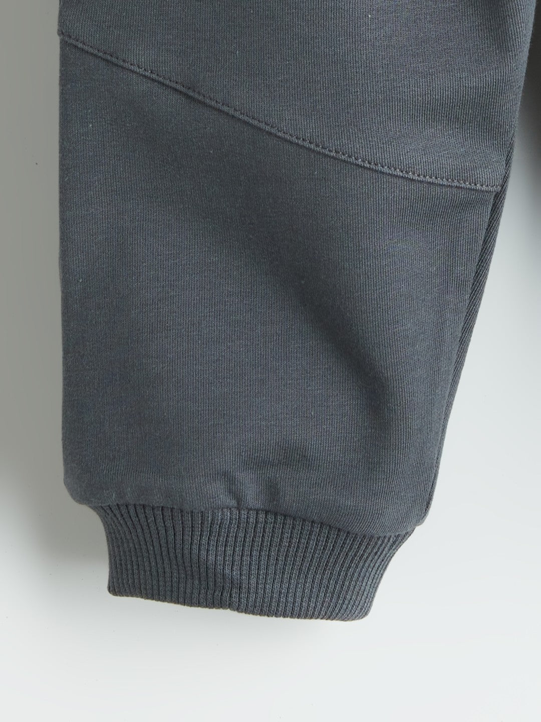 Made of single jersey fabric. This is a 2-piece suit consisting of a crew neck, long sleeve t-shirt, and elasticated waist and ribbed cuffed trousers.