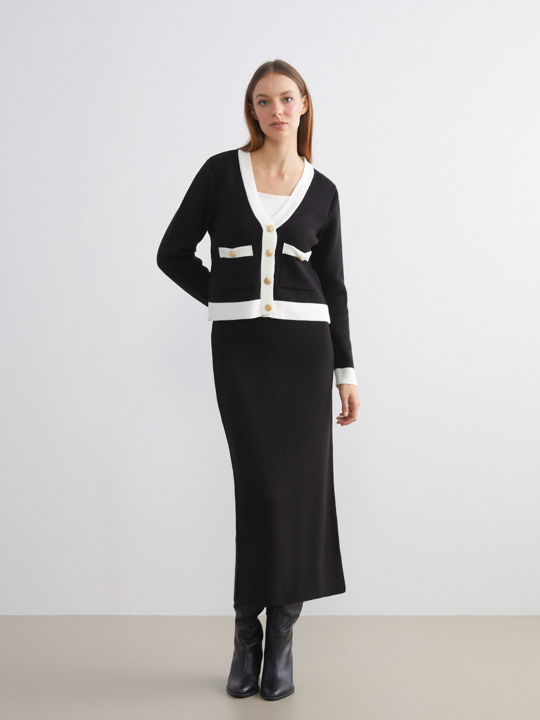LCW Modest Black Elastic Waist Slit Knit Skirt