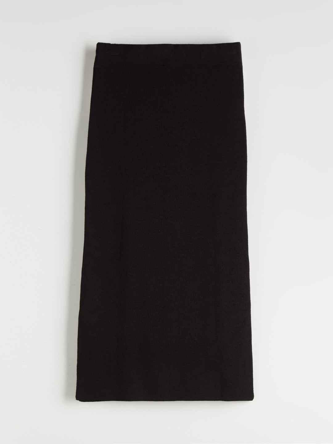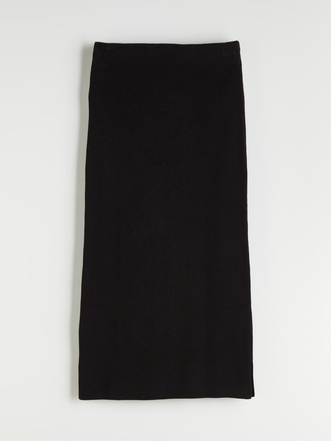 Women skirt with elastic waistband, made of knitwear, with a slit design.