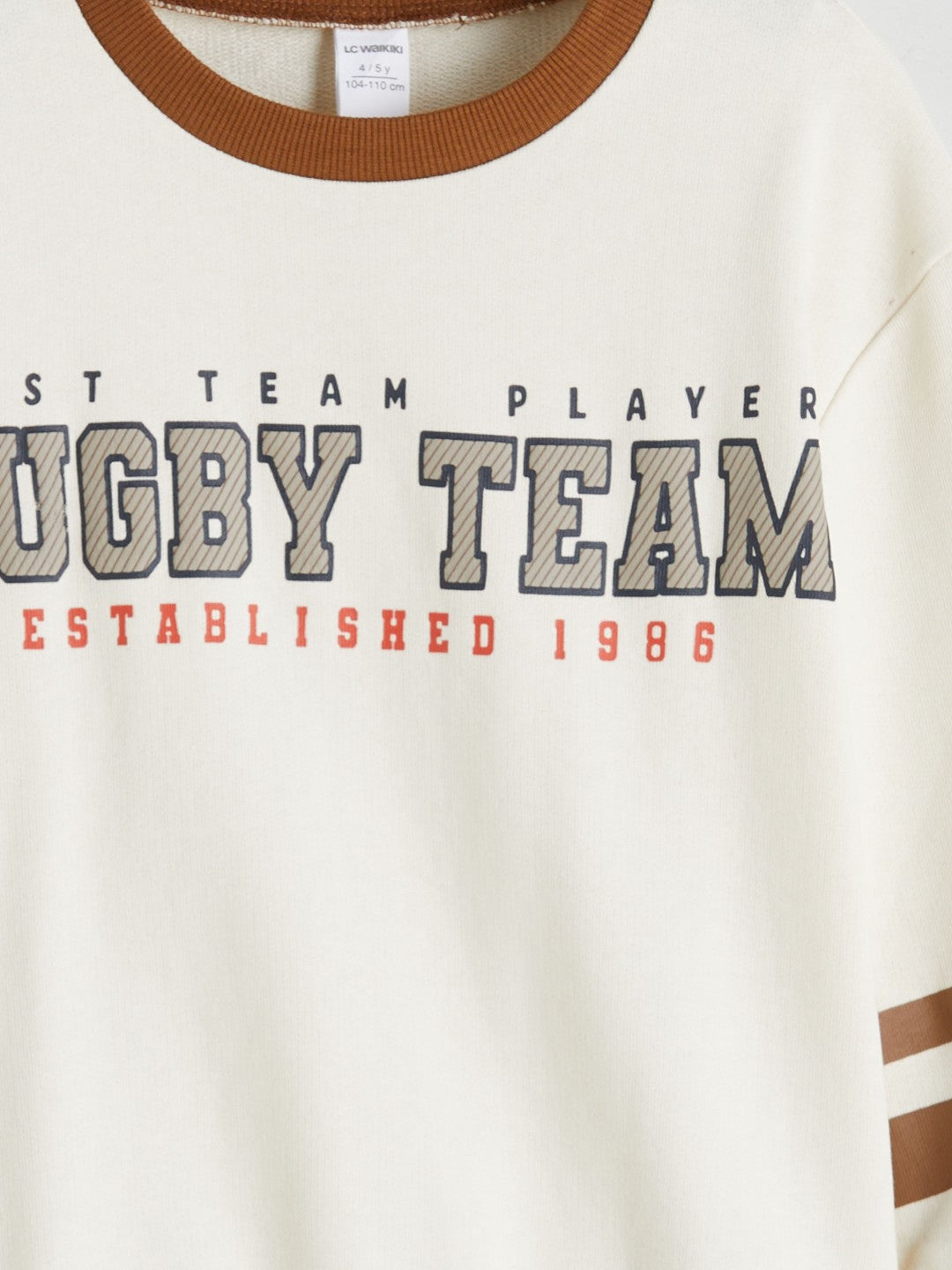 LCW Kids Beige Crew Neck Printed Boys Sweatshirt