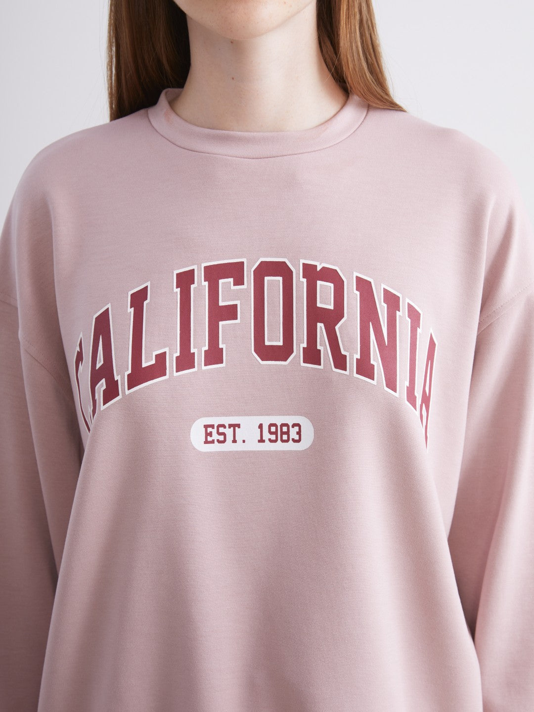 Xside Pink California Printed Oversize Women Sweatshirt Tunic