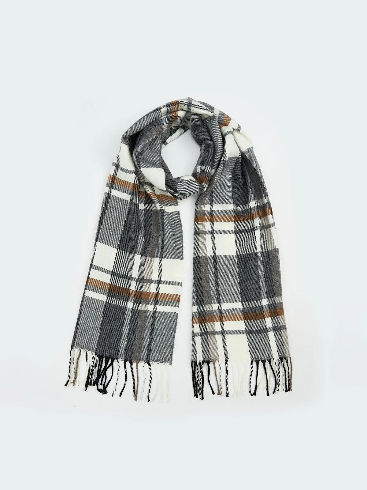 LCW Eco Beige Tassel Detailed Plaid Patterned Men Scarf