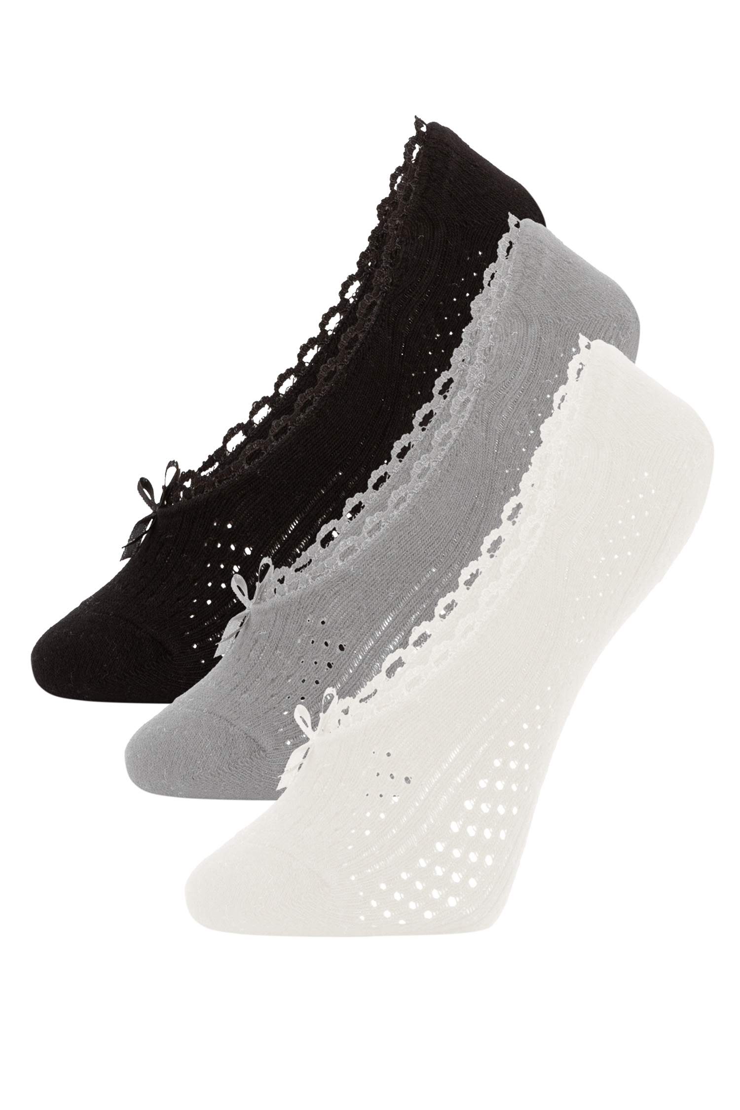 Women Invisible 3 Pcs Cotton Frill Babet Socks